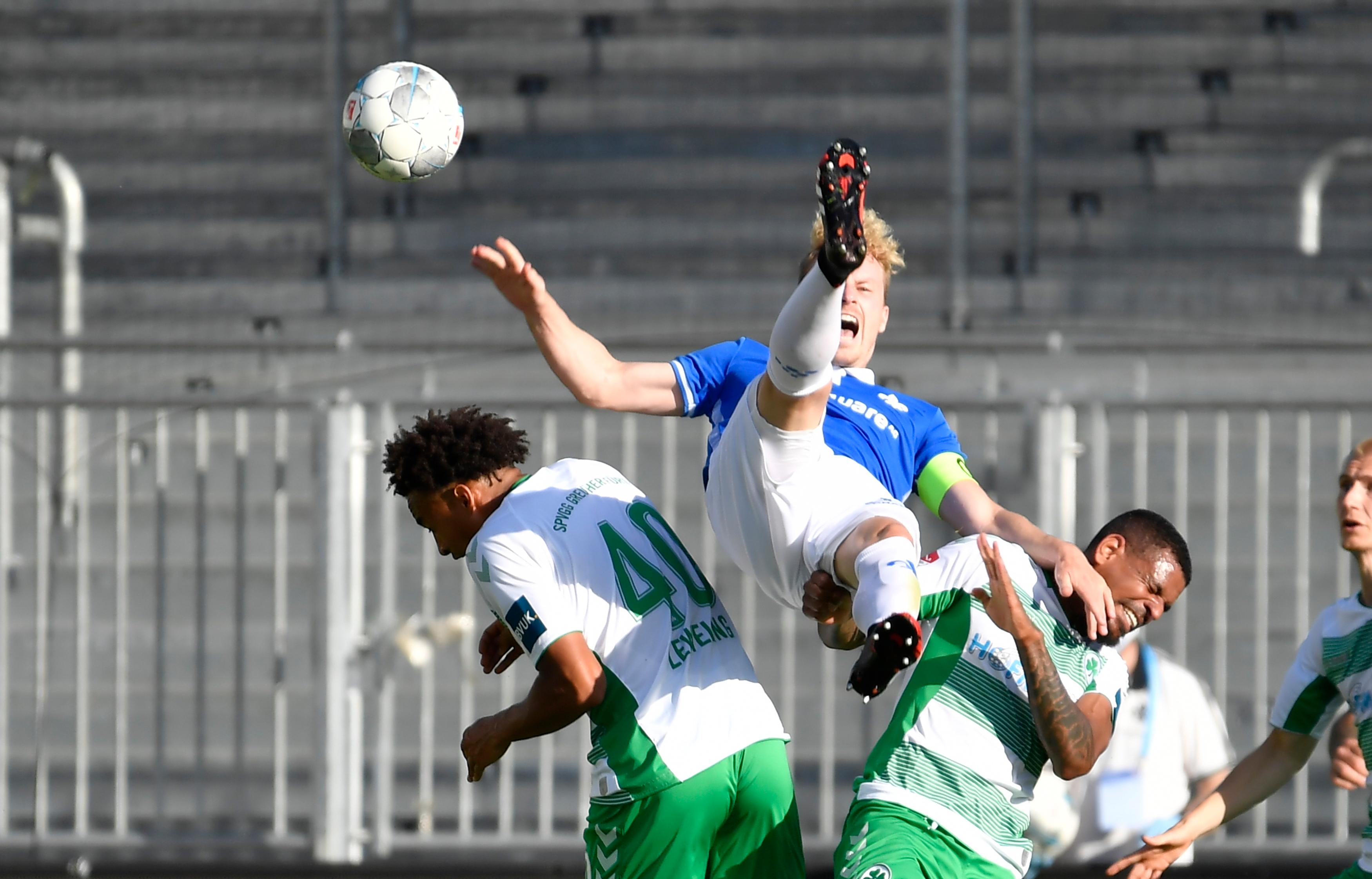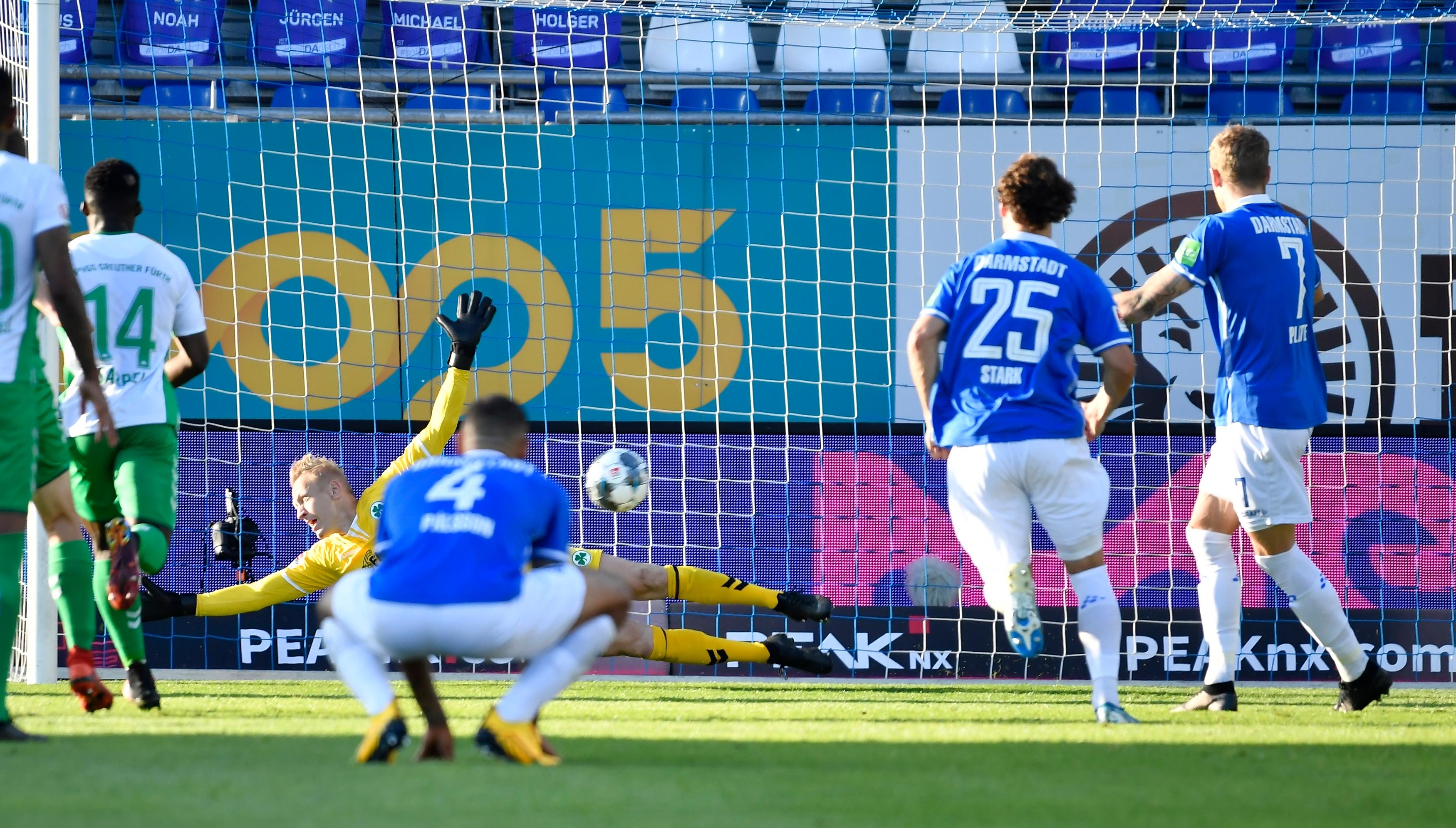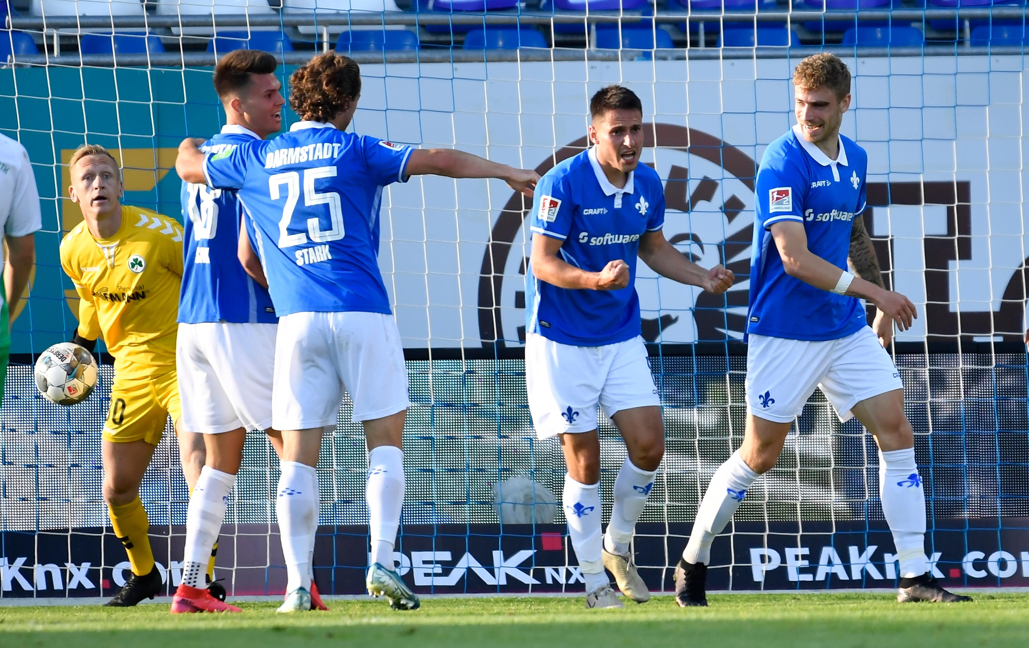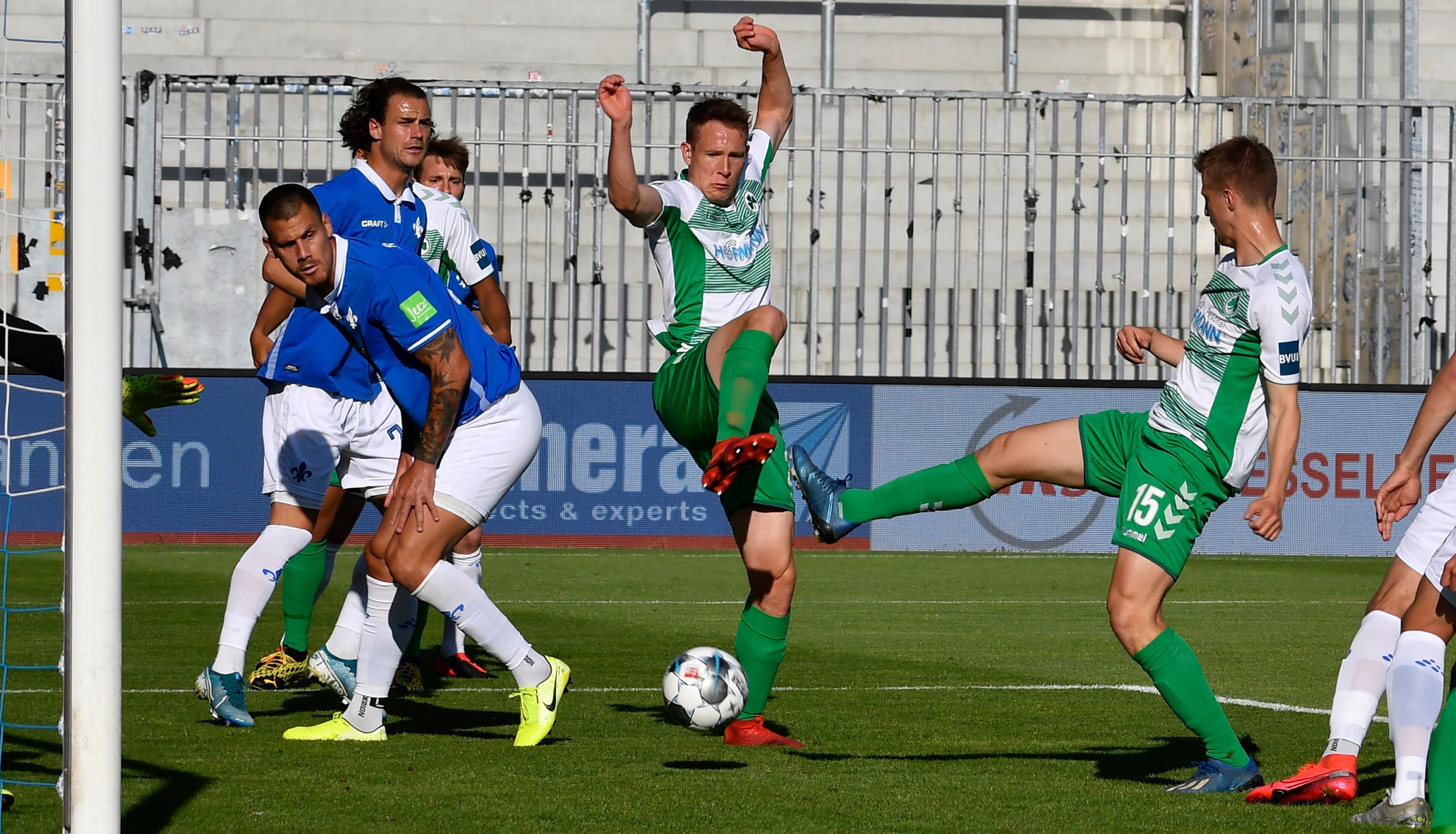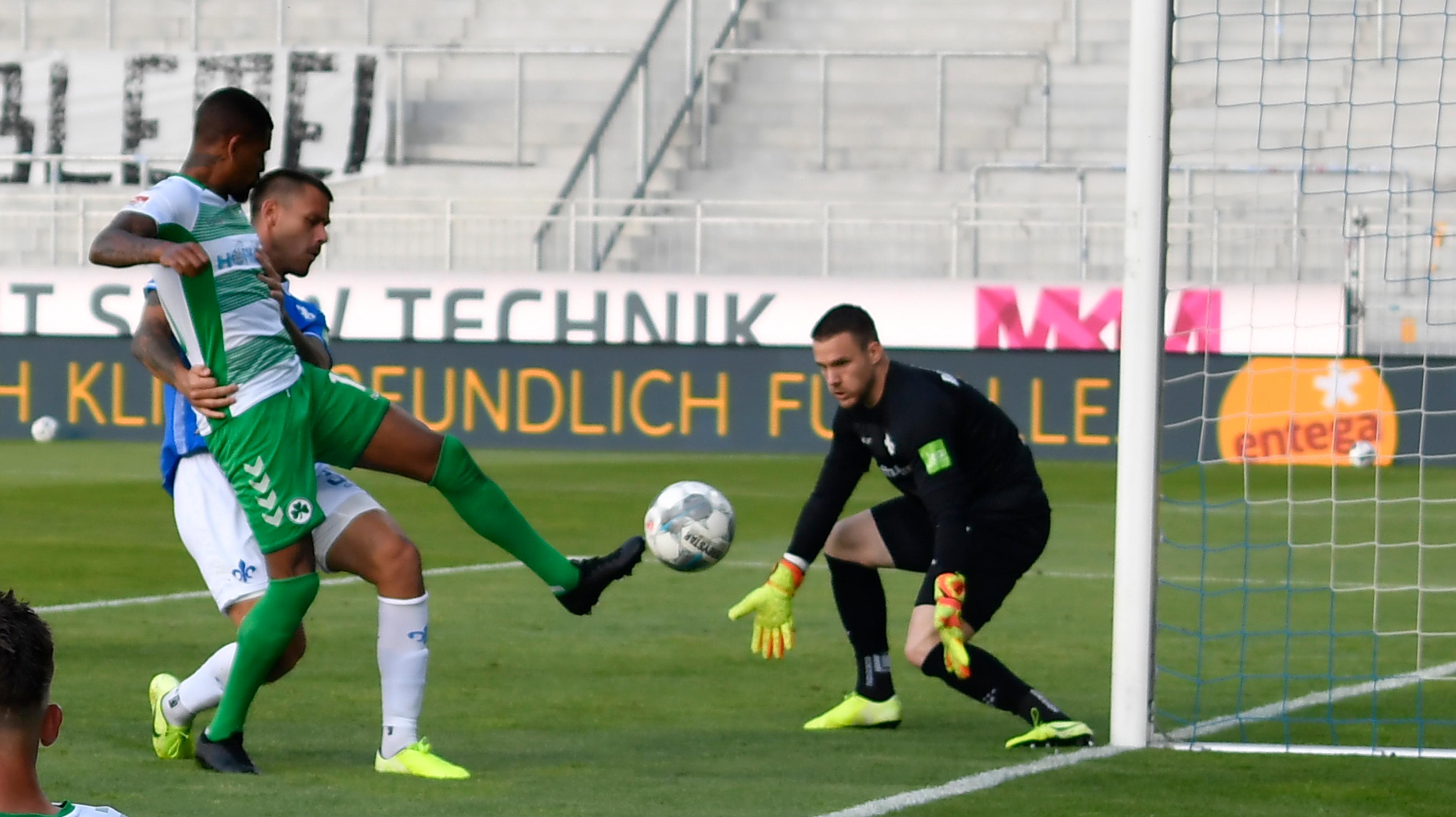 Eine wahre Achterbahnfahrt verfolgte Kleeblatt-Coach Stefan Leitl am Freitagabend in Darmstadt. Nach einer relativ ereignislosen ersten halben Stunde häuften sich die Chancen auf beiden Seiten. Nach zwei eigenen Riesenmöglichkeiten ging allerdings der Gastgeber in Führung und hätte mit einem fraglichen Elfmeter sogar auf 2:0 erhöhen können. Mit der Einwechslung von Marvin Stefaniak bewies Leitl dann ein gutes Händchen, für mehr als einen Zähler reichte es aber dennoch nicht mehr. Hier sind die Bilder des Spiels!