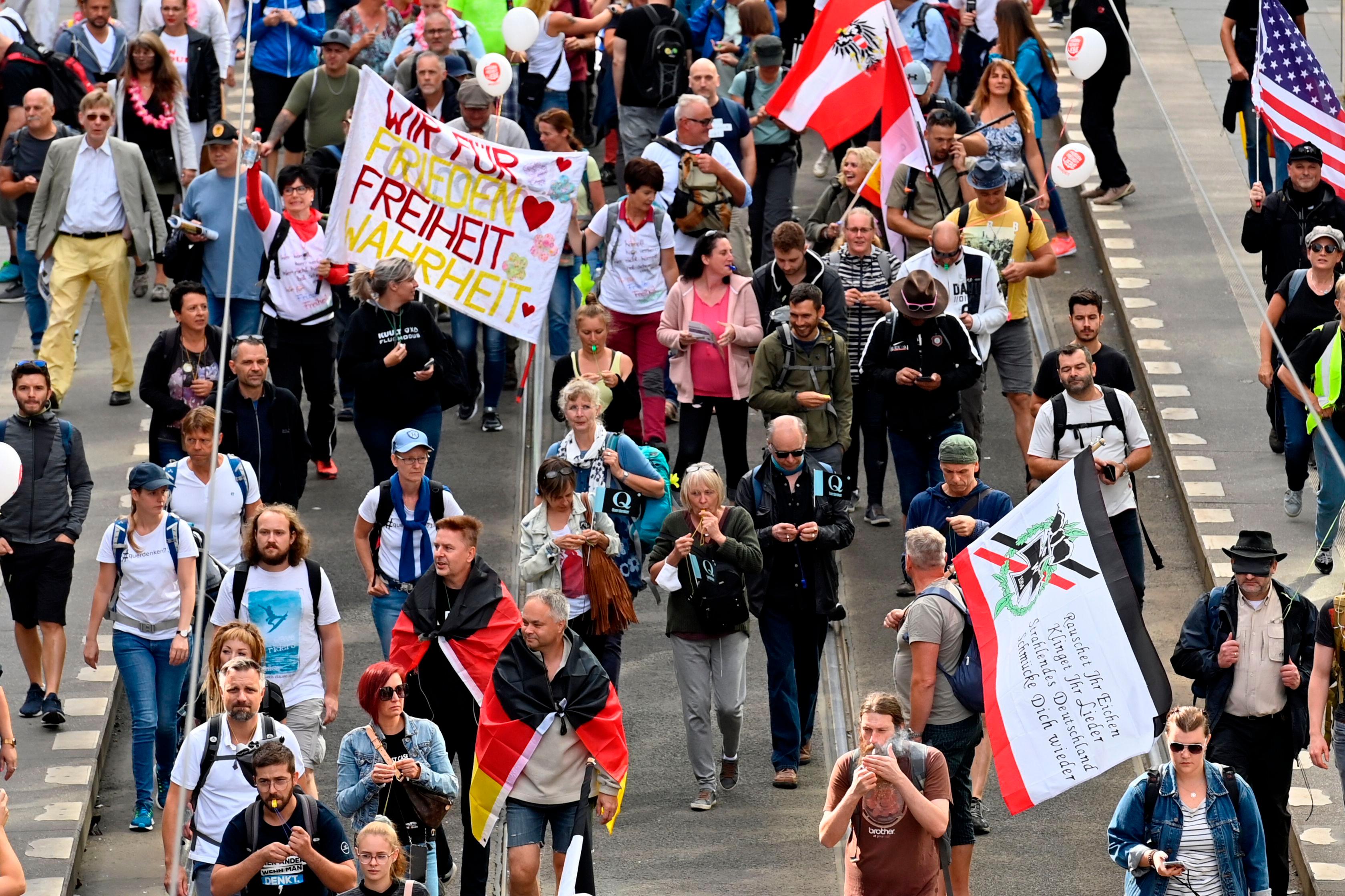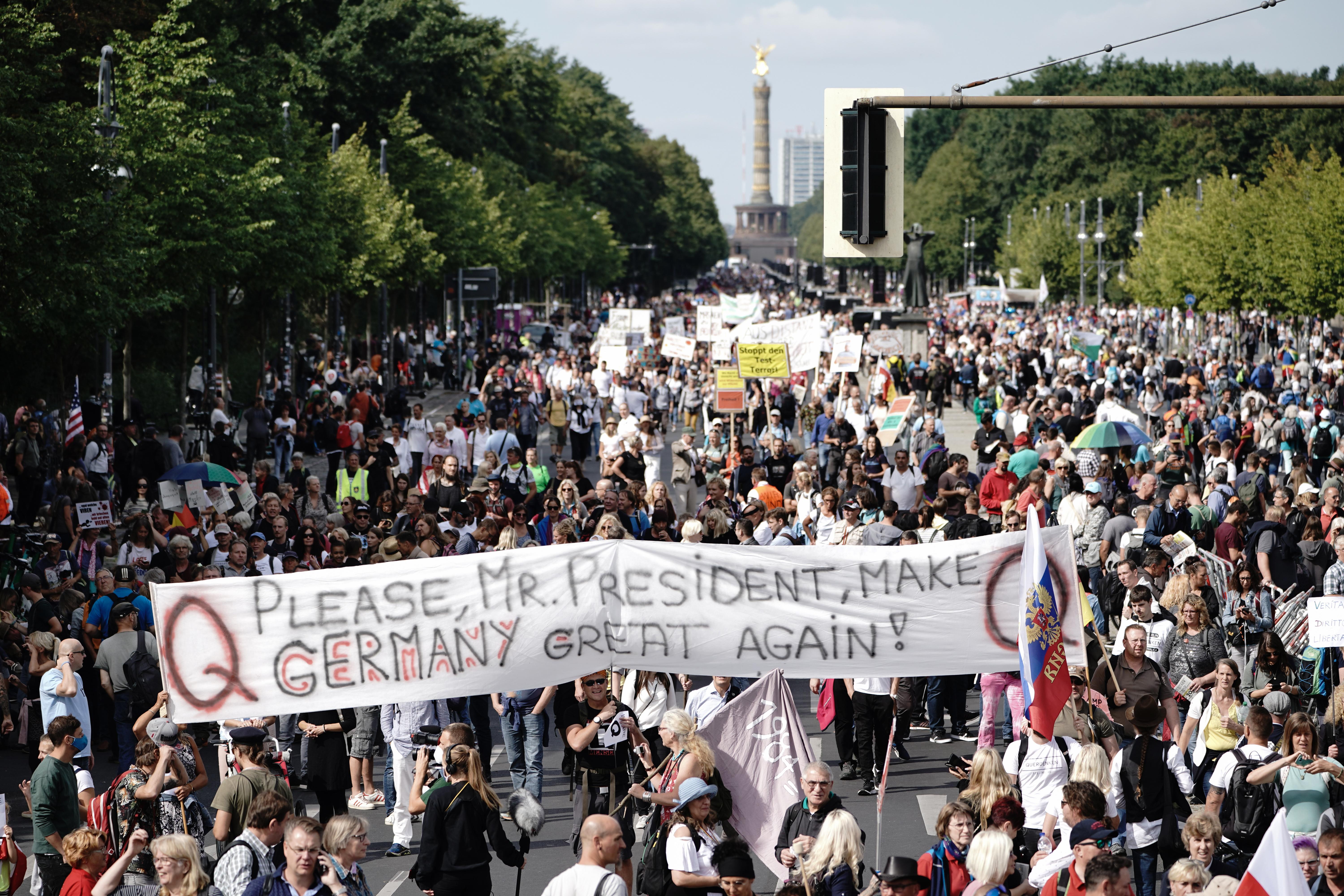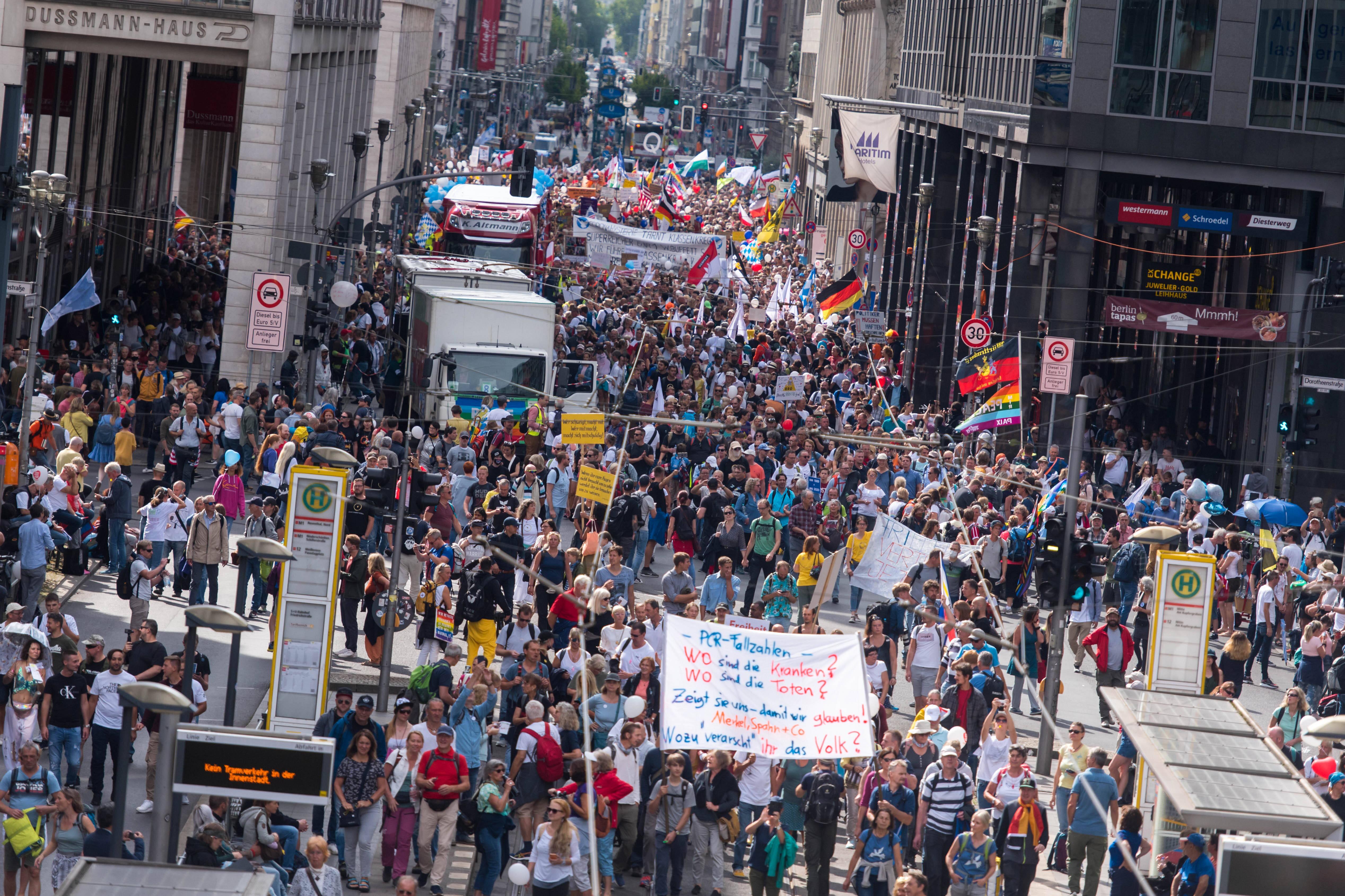 Bei der Demonstration gegen die Corona-Politik der Bundesregierung versammelten sich Ende August fast 18.000 Menschen in Berlin. Wegen Verstößen gegen die behördlichen Auflagen löste die Polizei die Demonstration am Samstagnachmittag auf.
