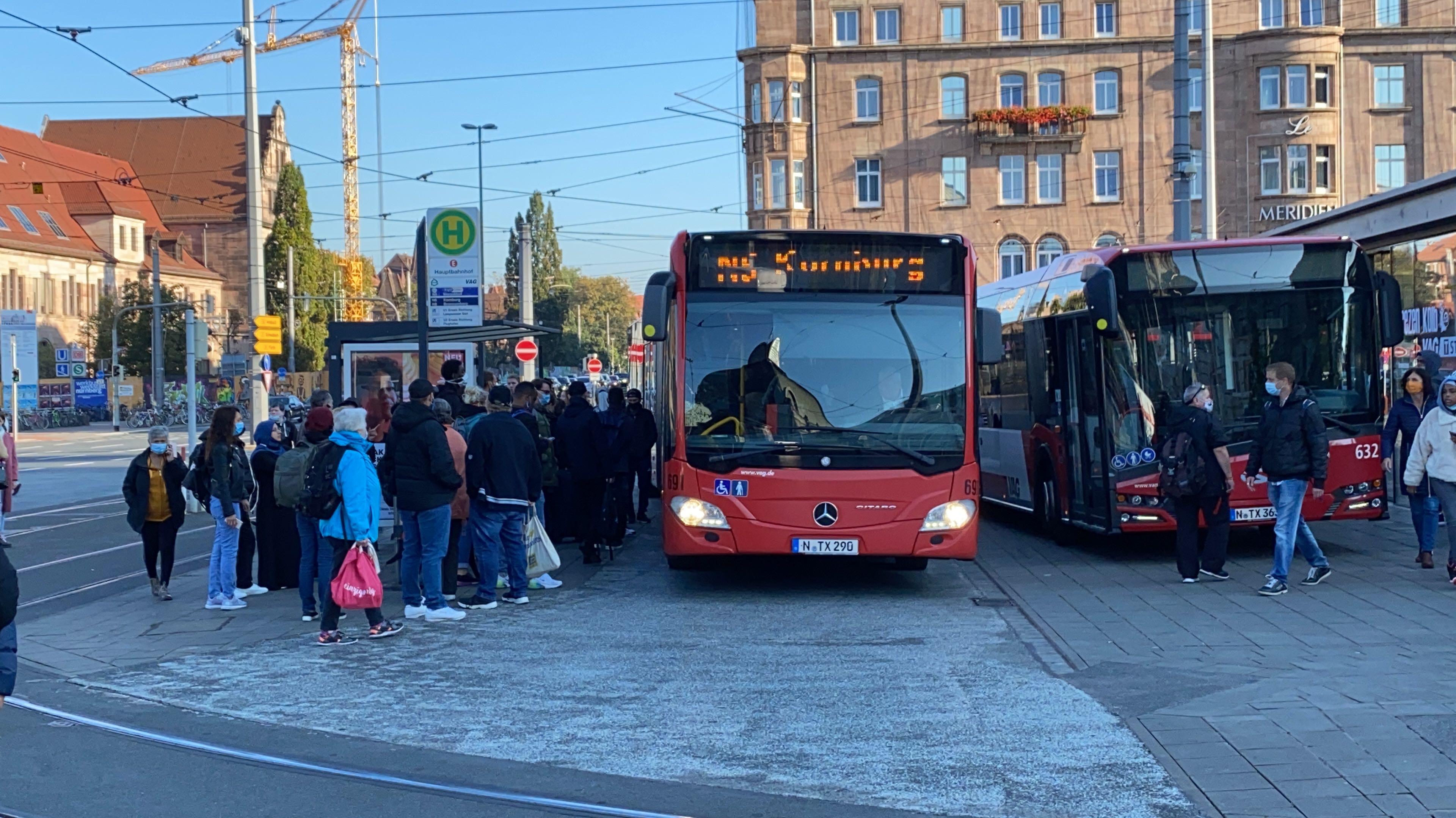 15/18 - Viele wartende Menschen an der Bushaltestelle am Nürnberger Hauptbahnhof. © NEWS5 / Bauernfeind