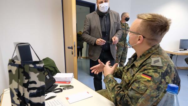Am Freitag hat die Stadtspitze um Oberbürgermeister Marcus König helfenden Soldaten und anderen Kontaktermittlern bei der Nachverfolgung von Corona-Infizierten Danke gesagt. Im Gesundheitsamt in Langwasser sei jeder, der dort Telefon sitze, "wertvoll", wie König sagte.