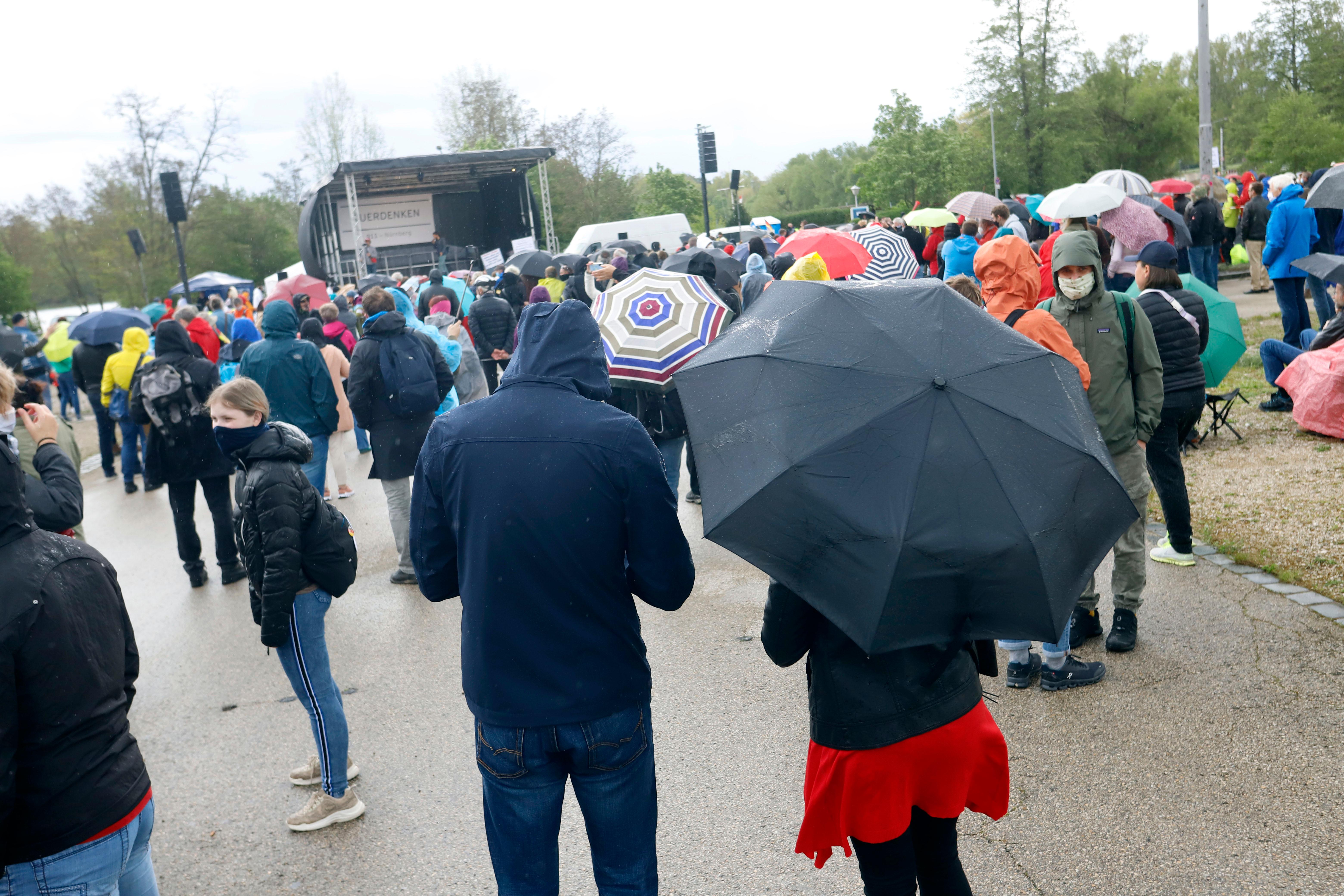 Zu einer "Querdenken"-Demonstration in Nürnberg sind am Samstag deutlich weniger Teilnehmer gekommen als von den Organisatoren angekündigt. Nach Angaben der Polizei kamen knapp 1200 Demonstranten zu der Kundgebung am Volksfestplatz. Für die Demo waren etwa 3500 Teilnehmer angekündigt gewesen.