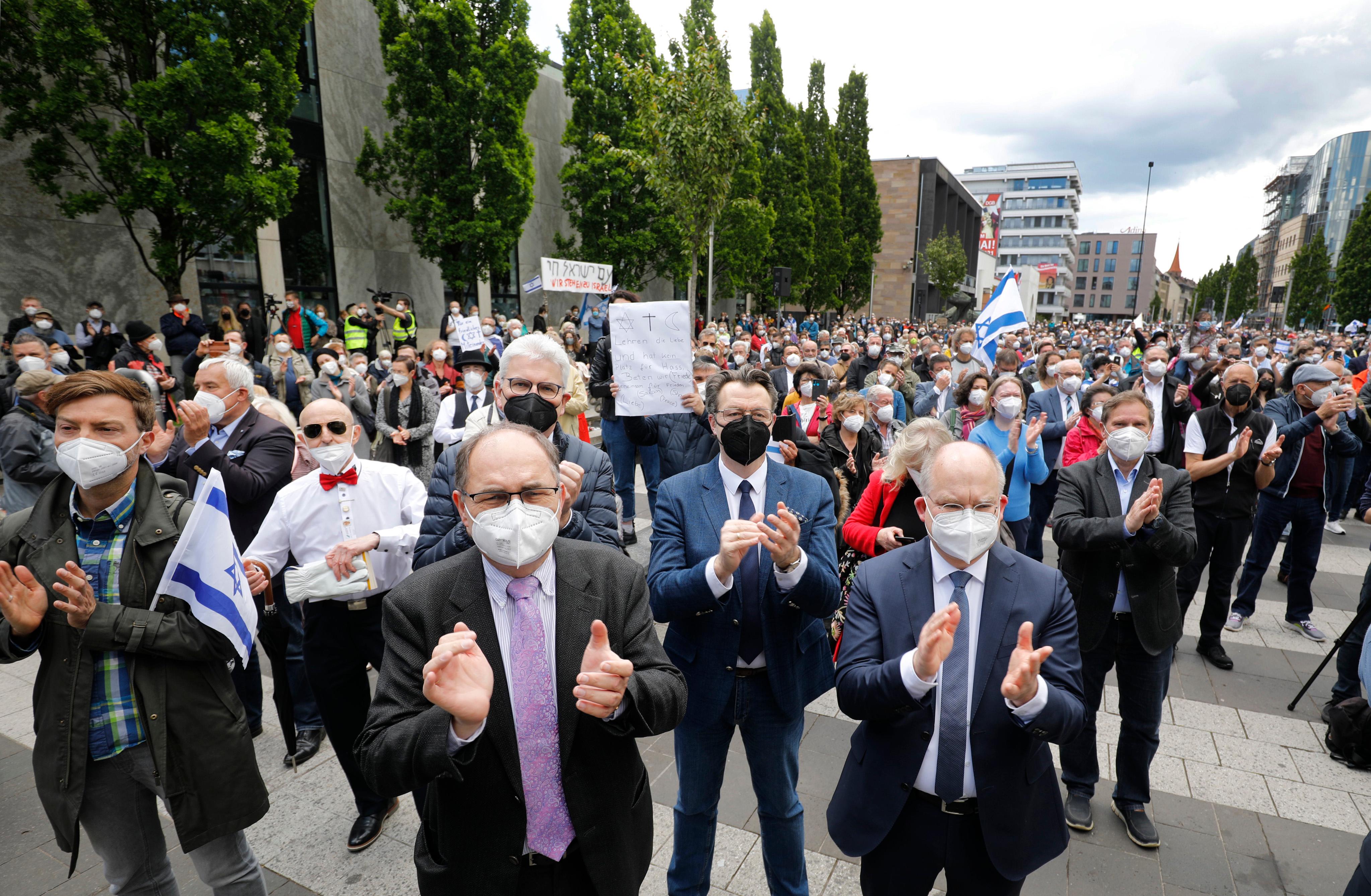 Am Pfingstsonntag versammelten sich auf dem Nürnberger Kornmarkt rund 1240 Menschen, um gegen Judenhass zu demonstrieren. Mit dabei waren auch Bayerns Innenminister Joachim Herrmann, Nürnbergs Oberbürgermeister Marcus König und NN-Chefredakteur Michael Husarek, die als Redner auftraten. Die Veranstaltung wurde aufgrund der angespannten Lage in Nahost von schwer bewaffneten Polizeikräften überwacht.