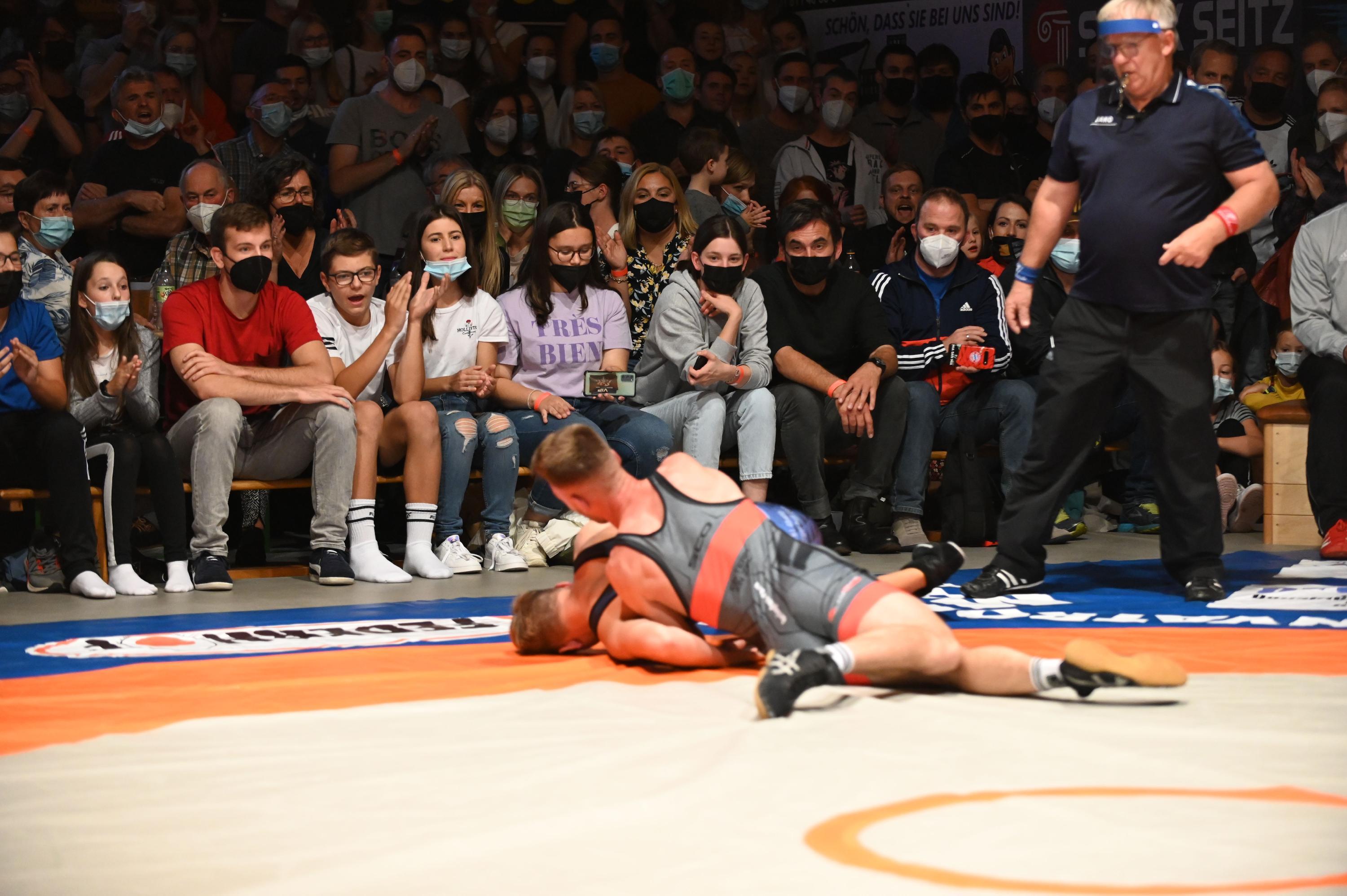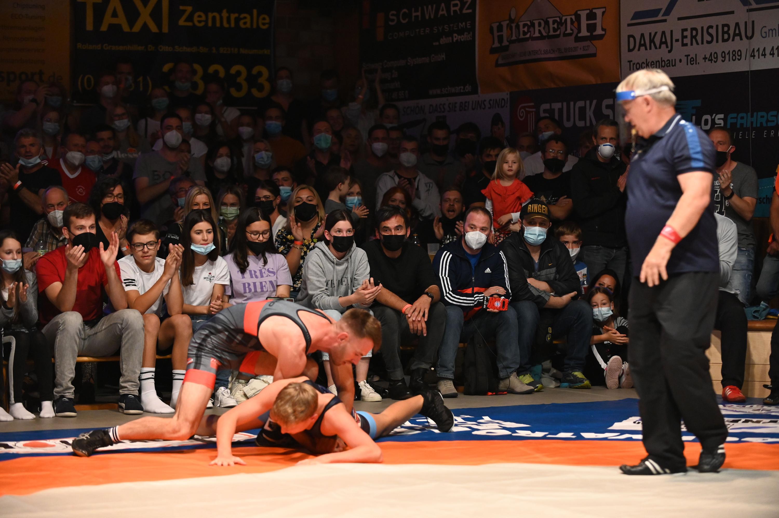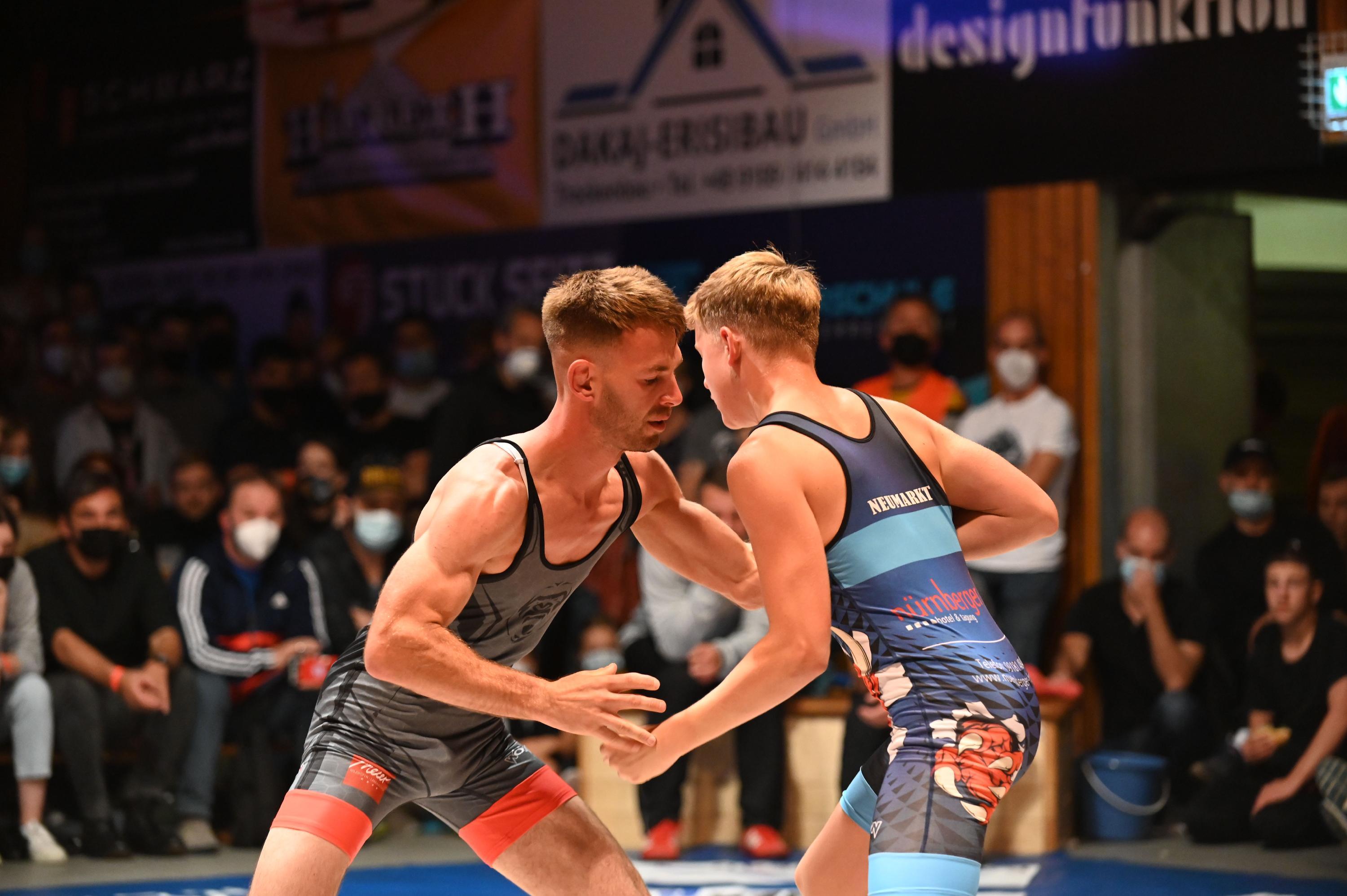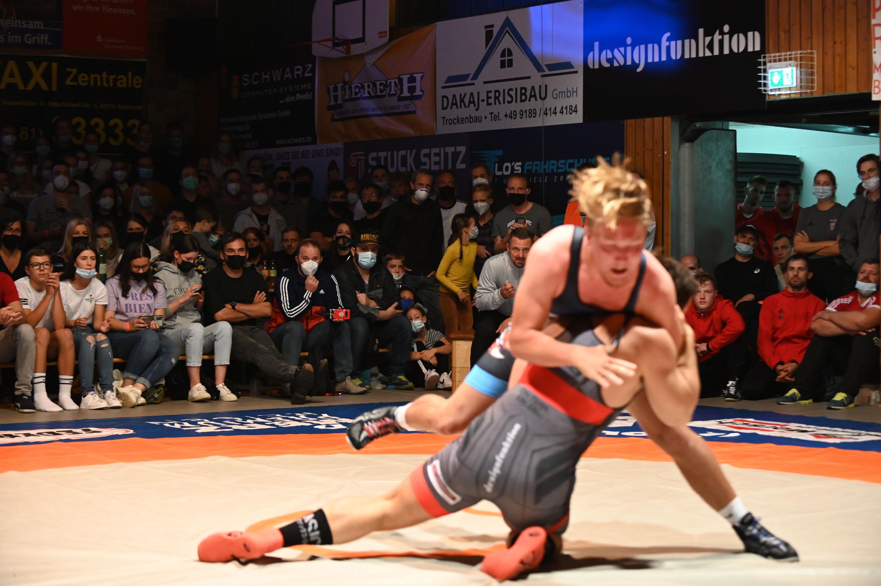 Die Oberölsbacher machen im Ringerderby der Bayernliga mit dem ASV Neumarkt beim 31:4 kurzen Prozess. Die SCO-Halle am Barstenweg in Unterölsbach war bis zum Bersten gefüllt.