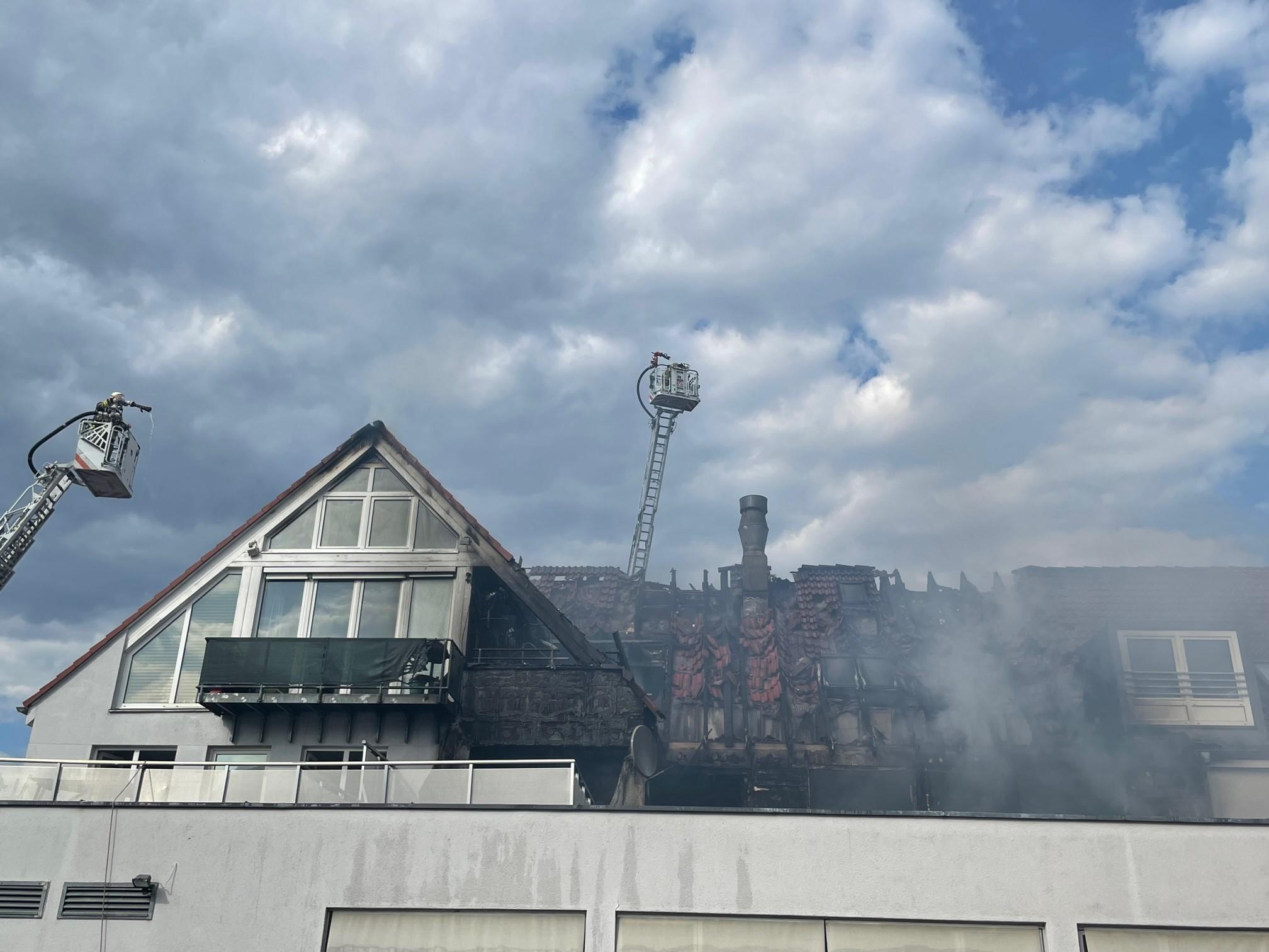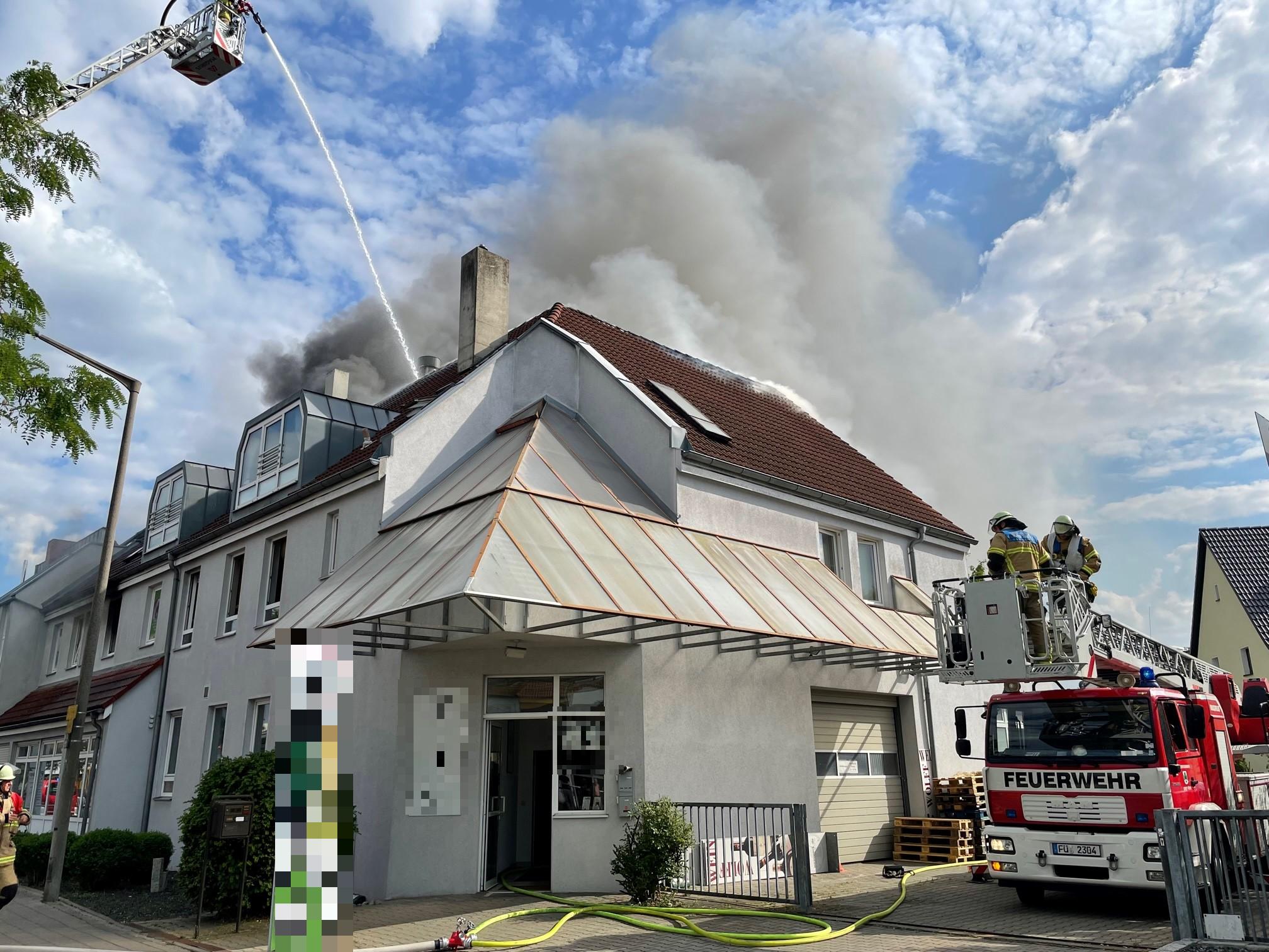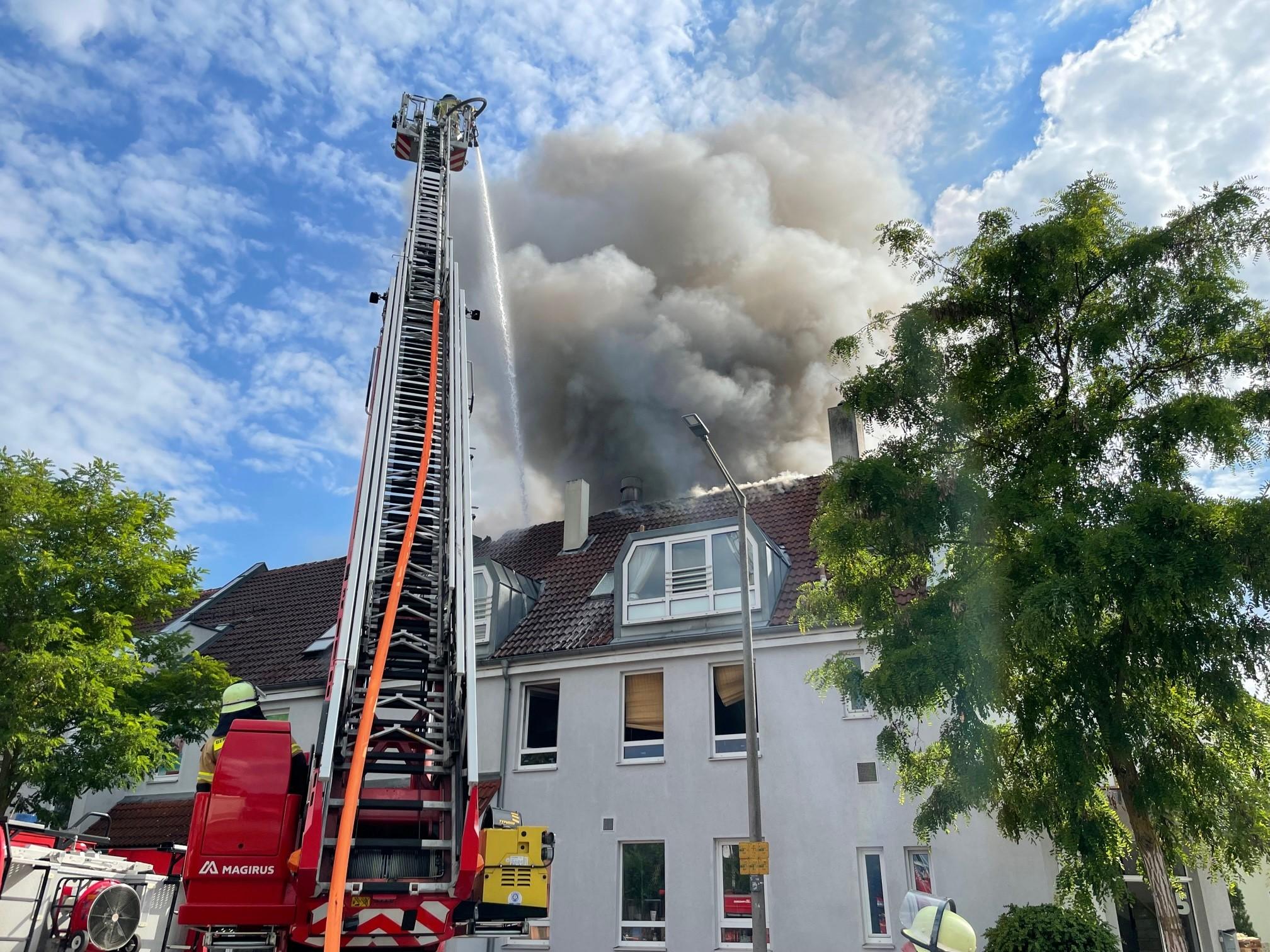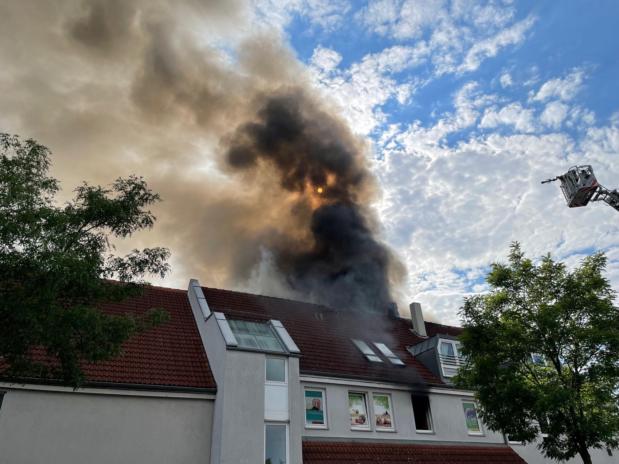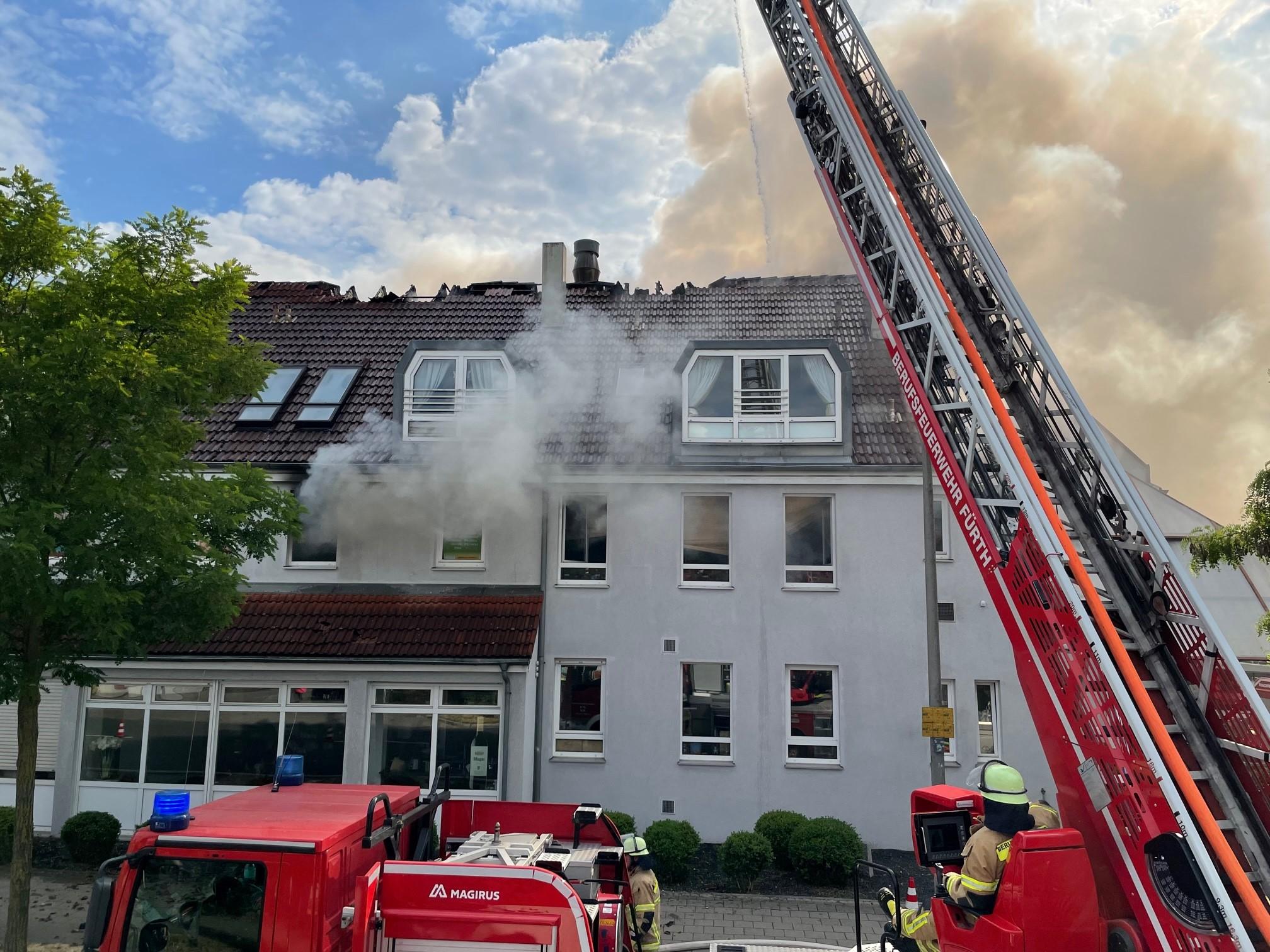 In der Hans-Vogel-Straße in Fürth fing der Dachstuhl eines Mehrfamilienhauses am späten Mittwochnachmittag Feuer - die starke Rauchentwicklung war auch in Nürnberg zu sehen. Alle Bewohner konnten aus dem brennenden Haus gerettet werden. Zwei erlitten leichte Verletzungen durch den Rauch.