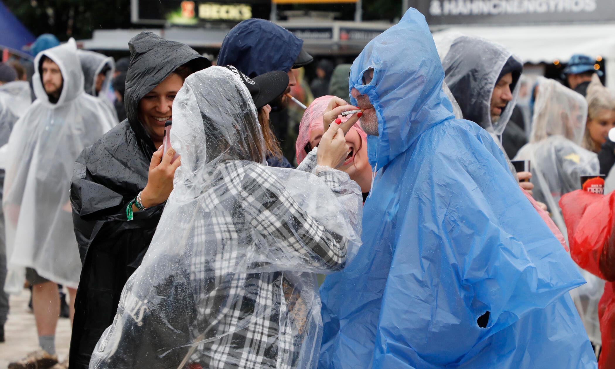 1/19 - Trotz Regen laufen die Besucherinnen und Besucher auf Rock im Park 2025 nicht nur im Regenponcho umher. © Stefan Hippel