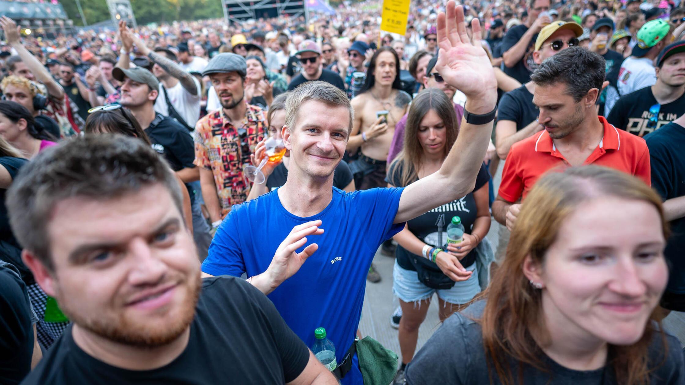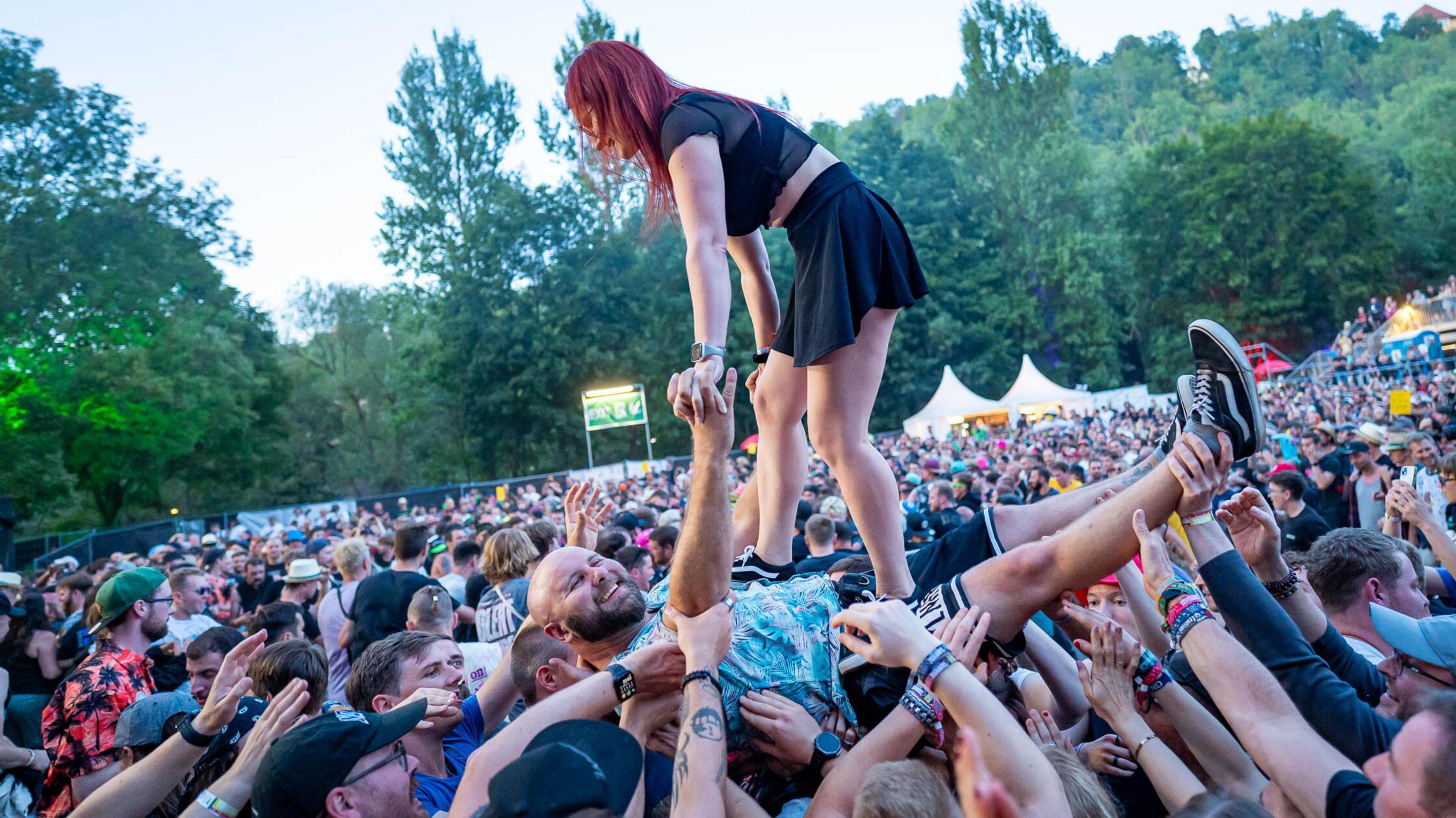 1/19 - Auf den Schultern hat man einfach die beste Sicht – und noch mehr Spaß mitten im Festivaltrubel! © Mirko Fryska