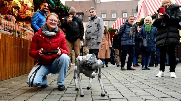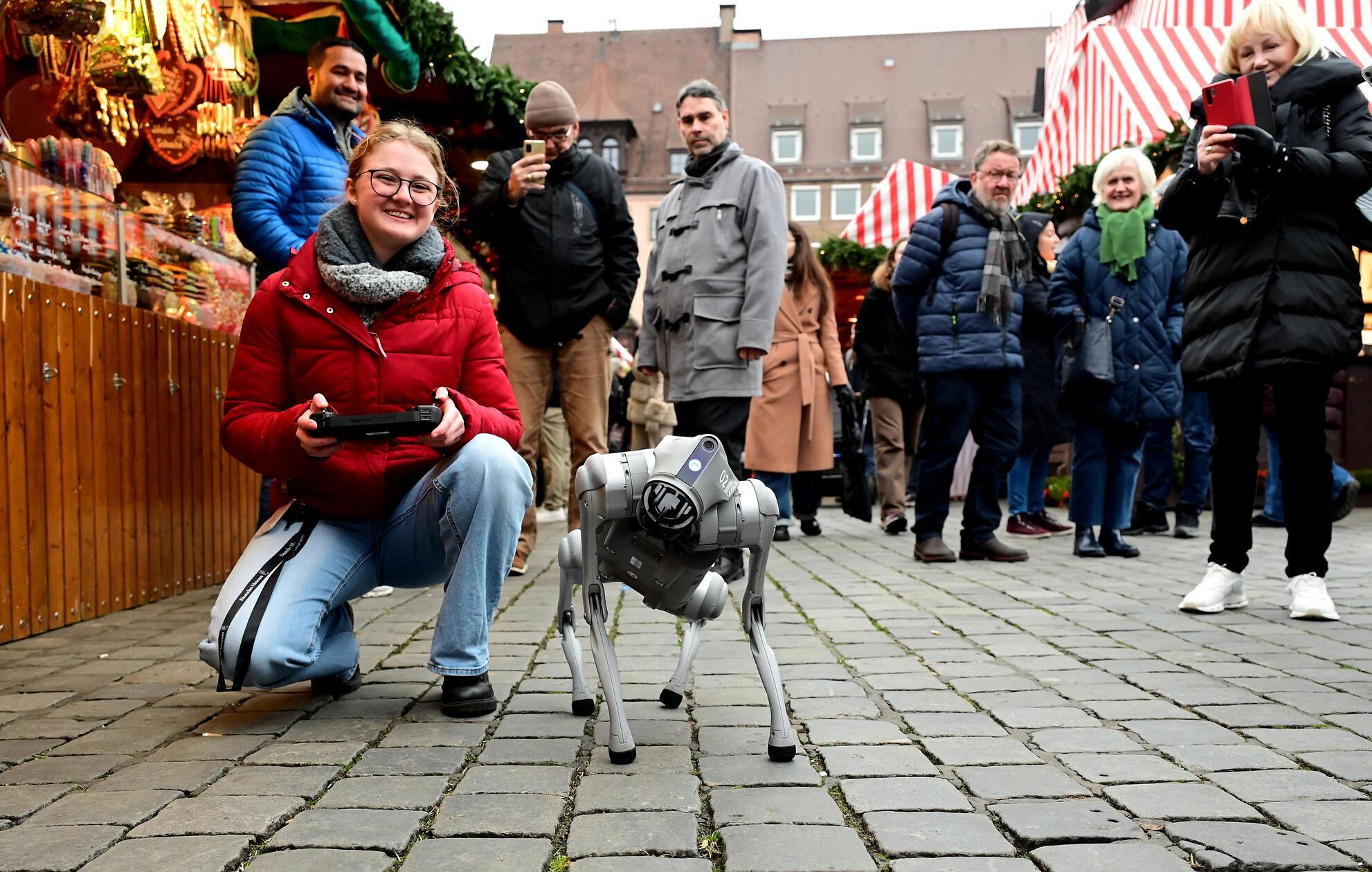 13/24 - Ein besonderer Vierbeiner sorgt zwischen den Buden für Aufsehen: Laura Sohns vom Zukunftsmuseum führt ihren Robot Dog spazieren. © Hans-Joachim Winckler