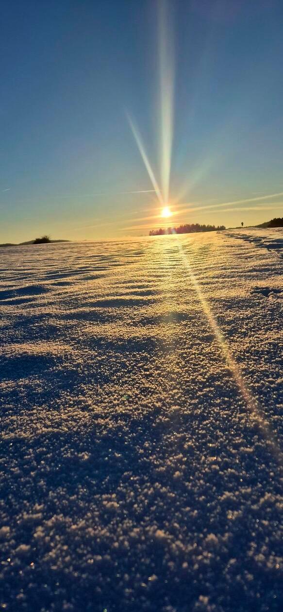 8/20 - Toppen lässt sich die Kombination Sonne und Schnee, wenn überhaupt, mit der Kombination Sonnenuntergänge und Schnee - so wie hier... © Melanie Ruehlemann
