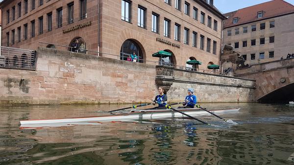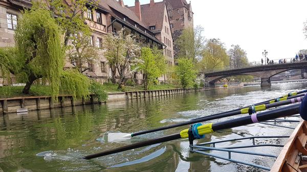 Die Jugend des Rudervereins Nürnberg von 1880 e.V. startete am Samstagvormittag zu ihrem ersten Training der Saison - das fand publikumswirksam auf der Pegnitz mitten in der Nürnberger Innenstadt statt. Unsere Redakteurin durfte mit an Board und die Altstadt aus ungewohnter Perspektive sehen.