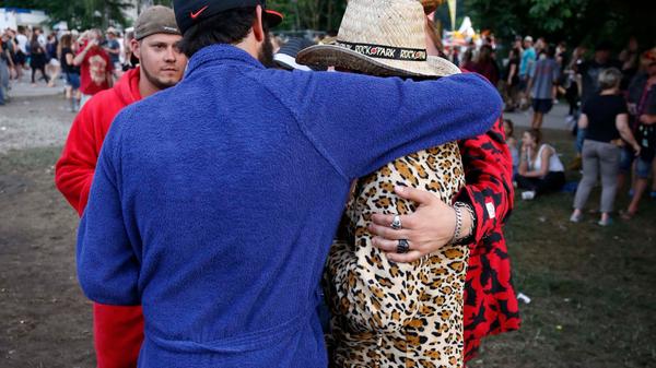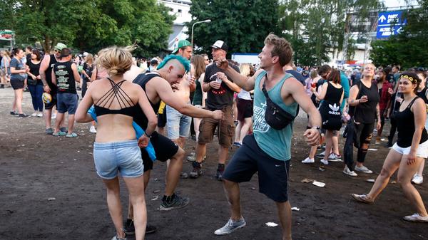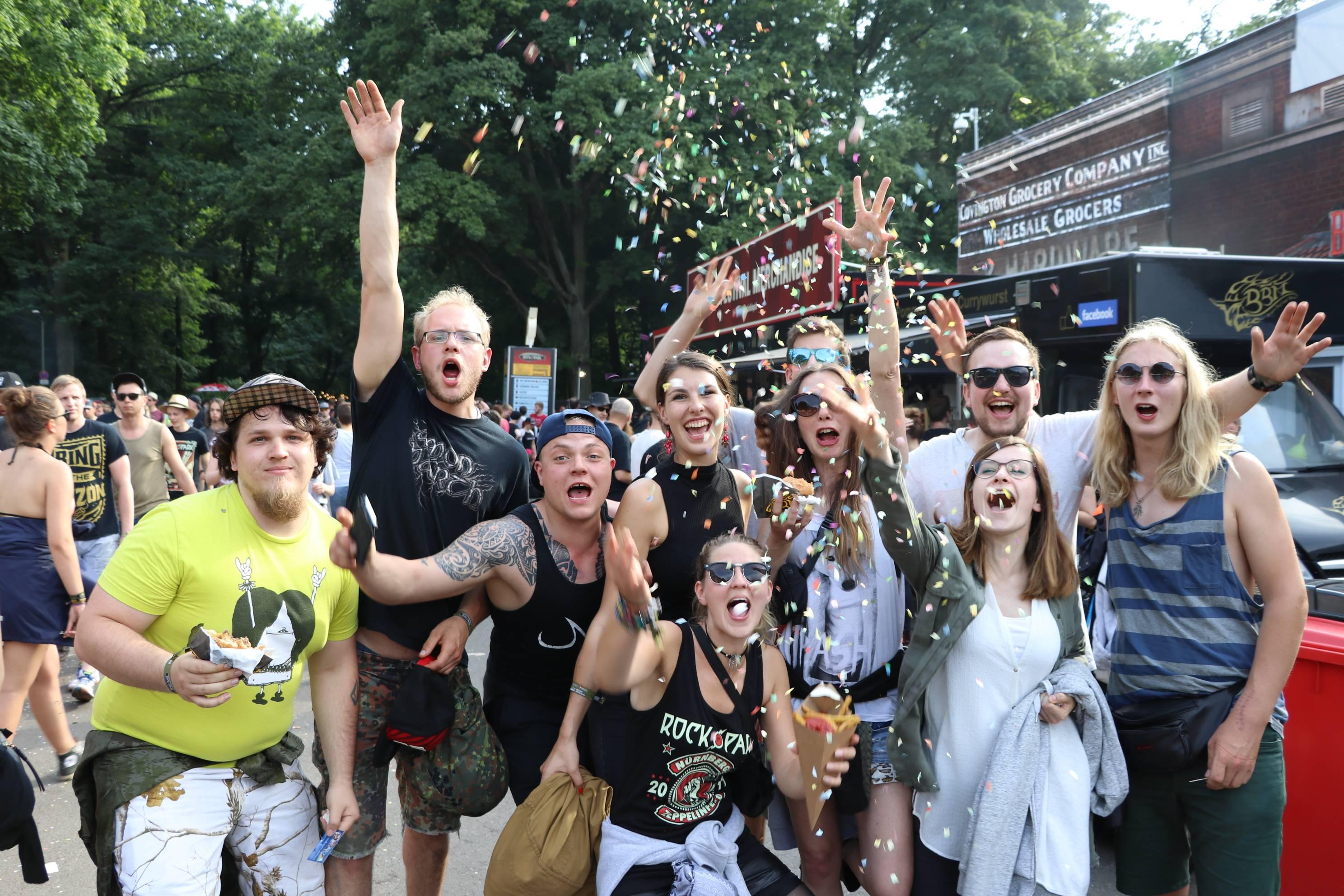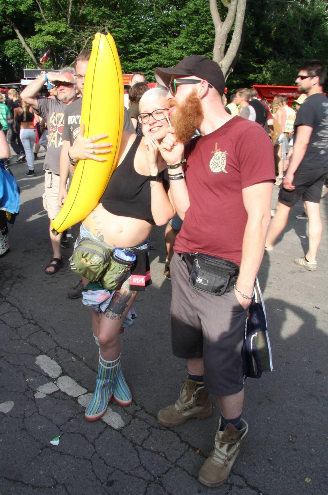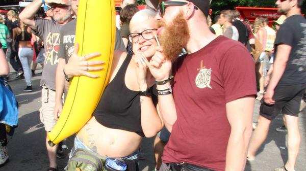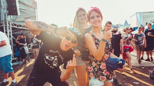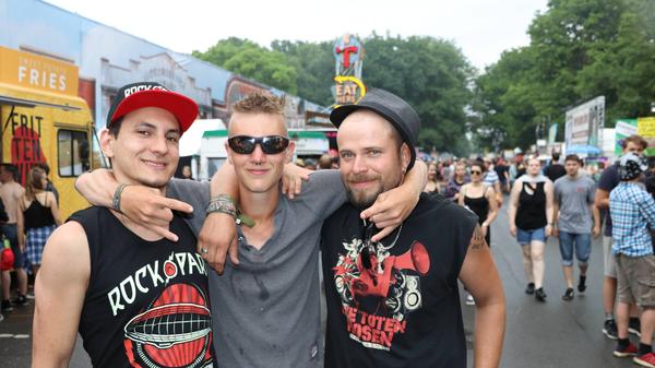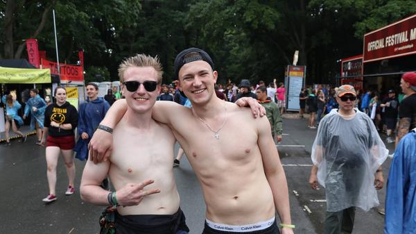Sie sind ja nicht aus Zucker, die RiP-Besucher. Deshalb hat ihnen der kleine Schauer auch absolut nichts ausgemacht. Schließlich stehen am Abend System of a Down, Annenmaykantereit, Bonaparte und viele mehr an. Also Krönchen richten und weiter geht's!