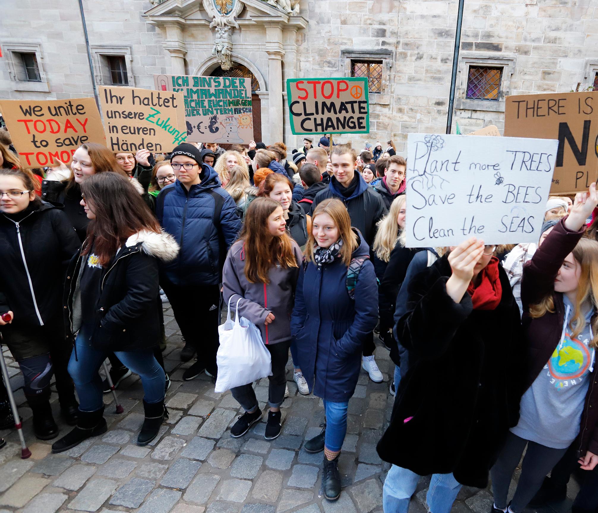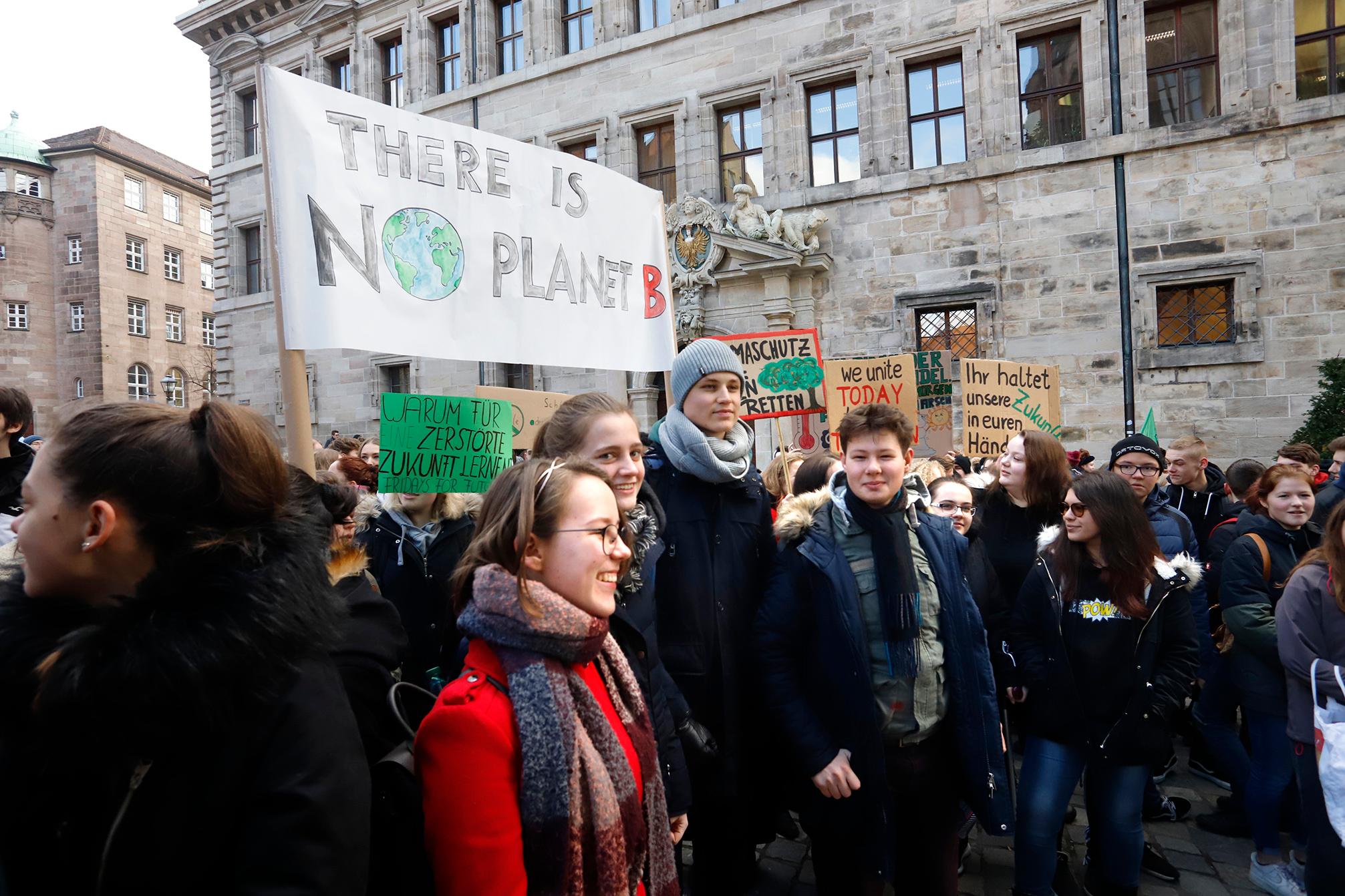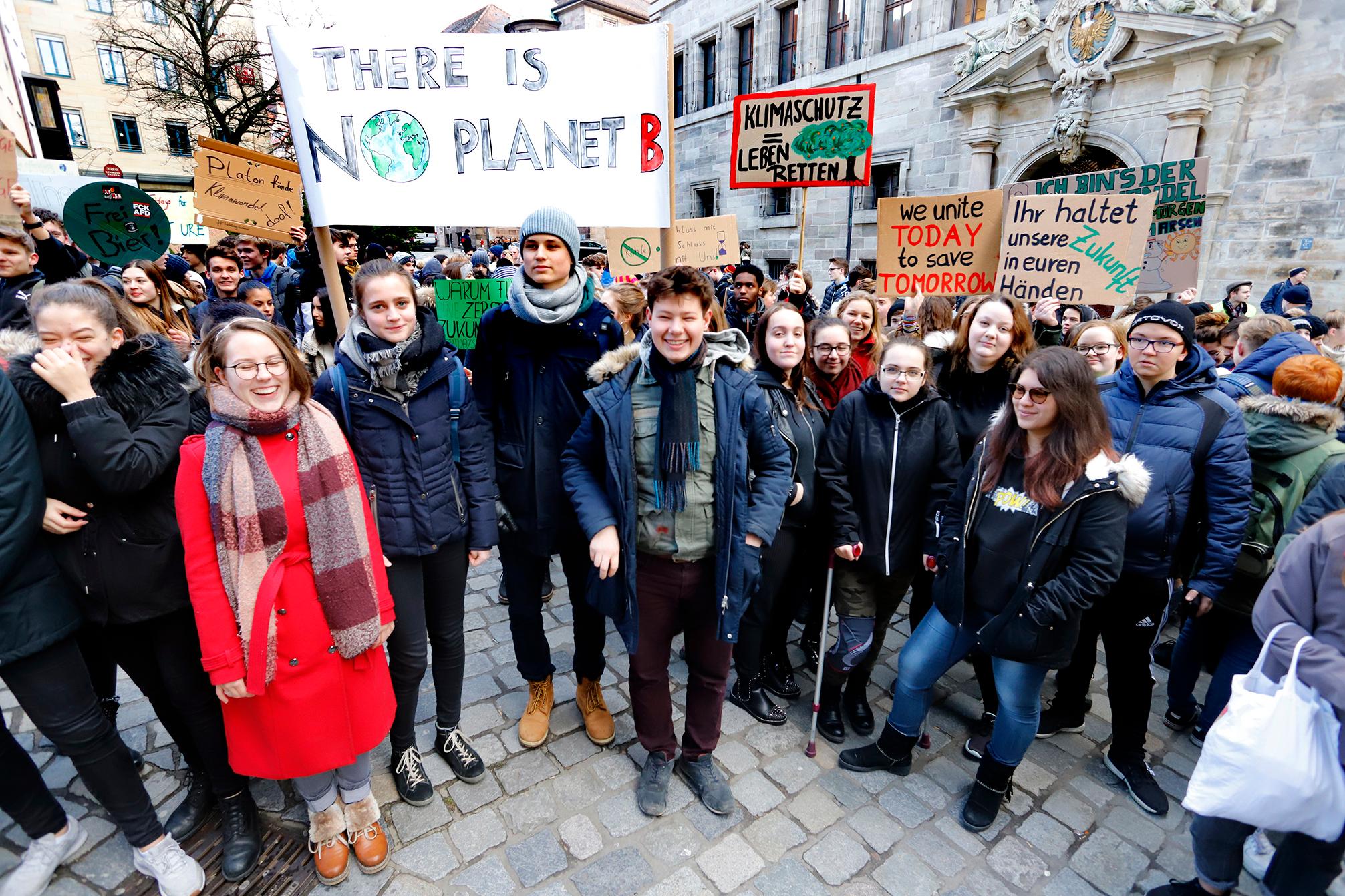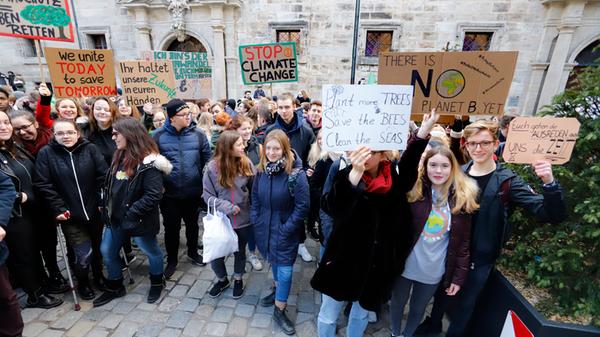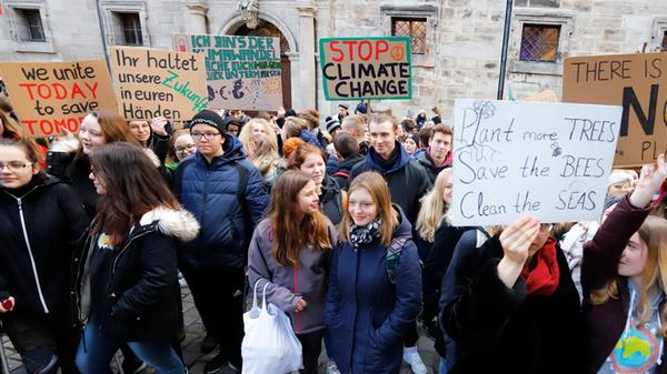 Demo statt Schule: Um zehn Uhr versammelten sich in Nürnberg zahlreiche Schüler und Schülerinnen, um für eine bessere Klimapolitik zu demonstrieren. "There is no Planet B" oder "The climate ist changing, why aren't you", stand auf den Plakaten, die die Jugendlichen auf ihrem Weg durch die Stadt in die Höhe hielten. Unter dem Motto #FridaysForFuture fand der Schülerstreik am Freitag in vielen deutschen Städten statt.