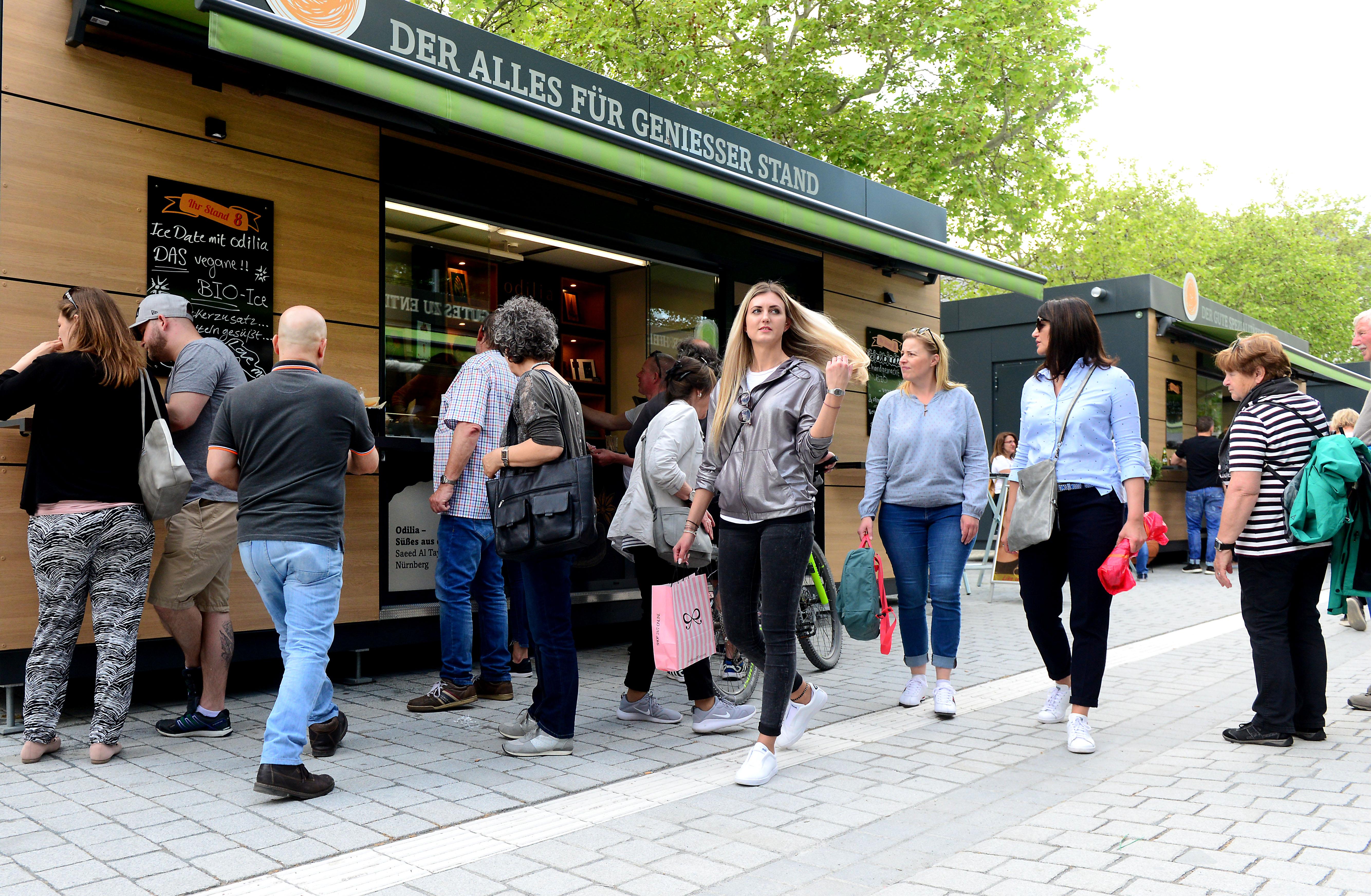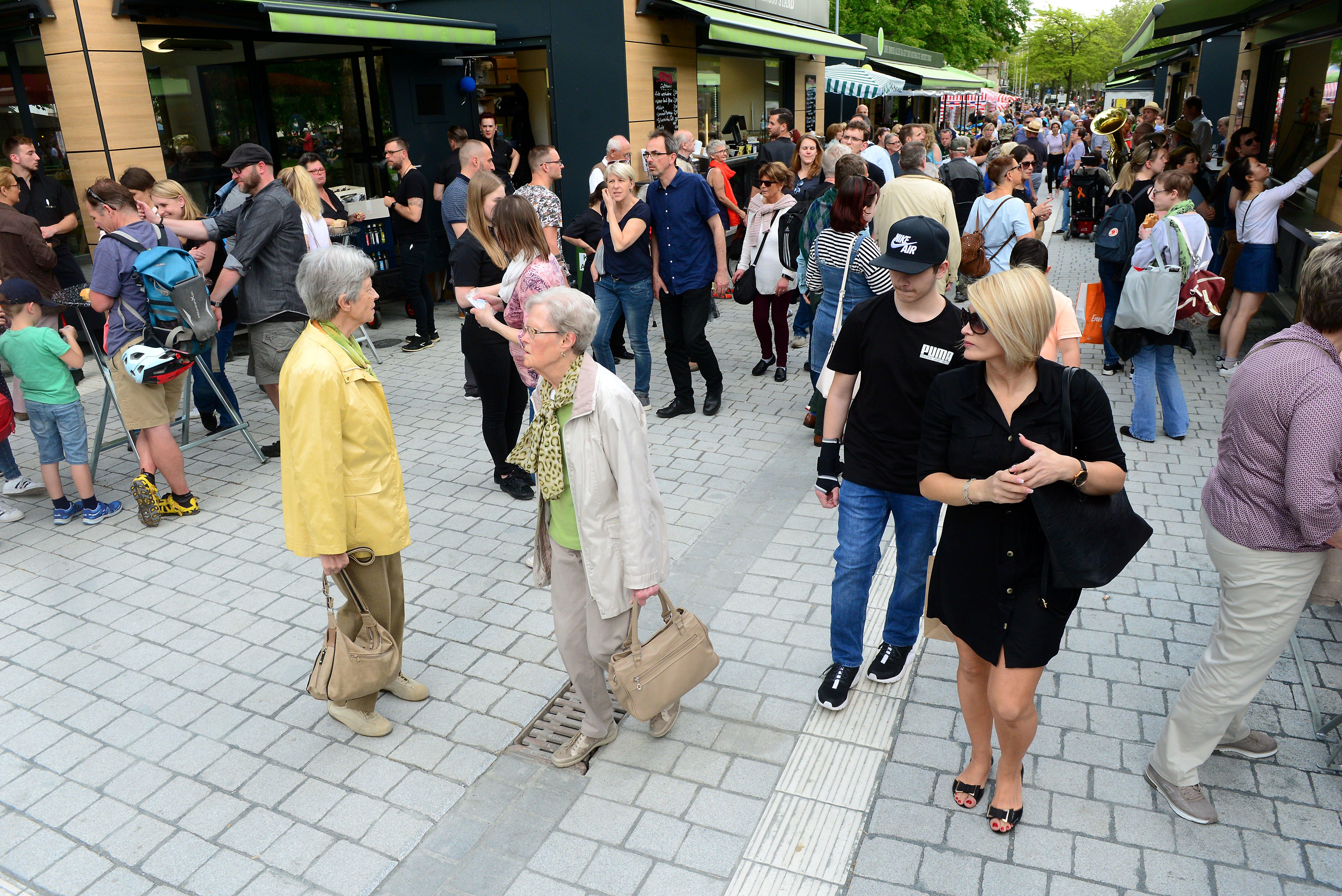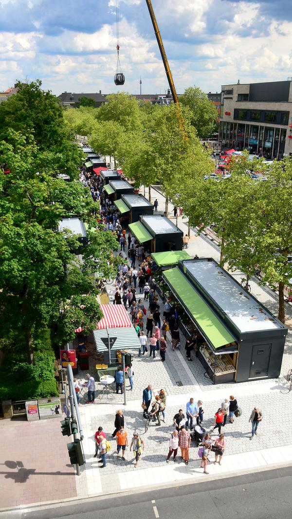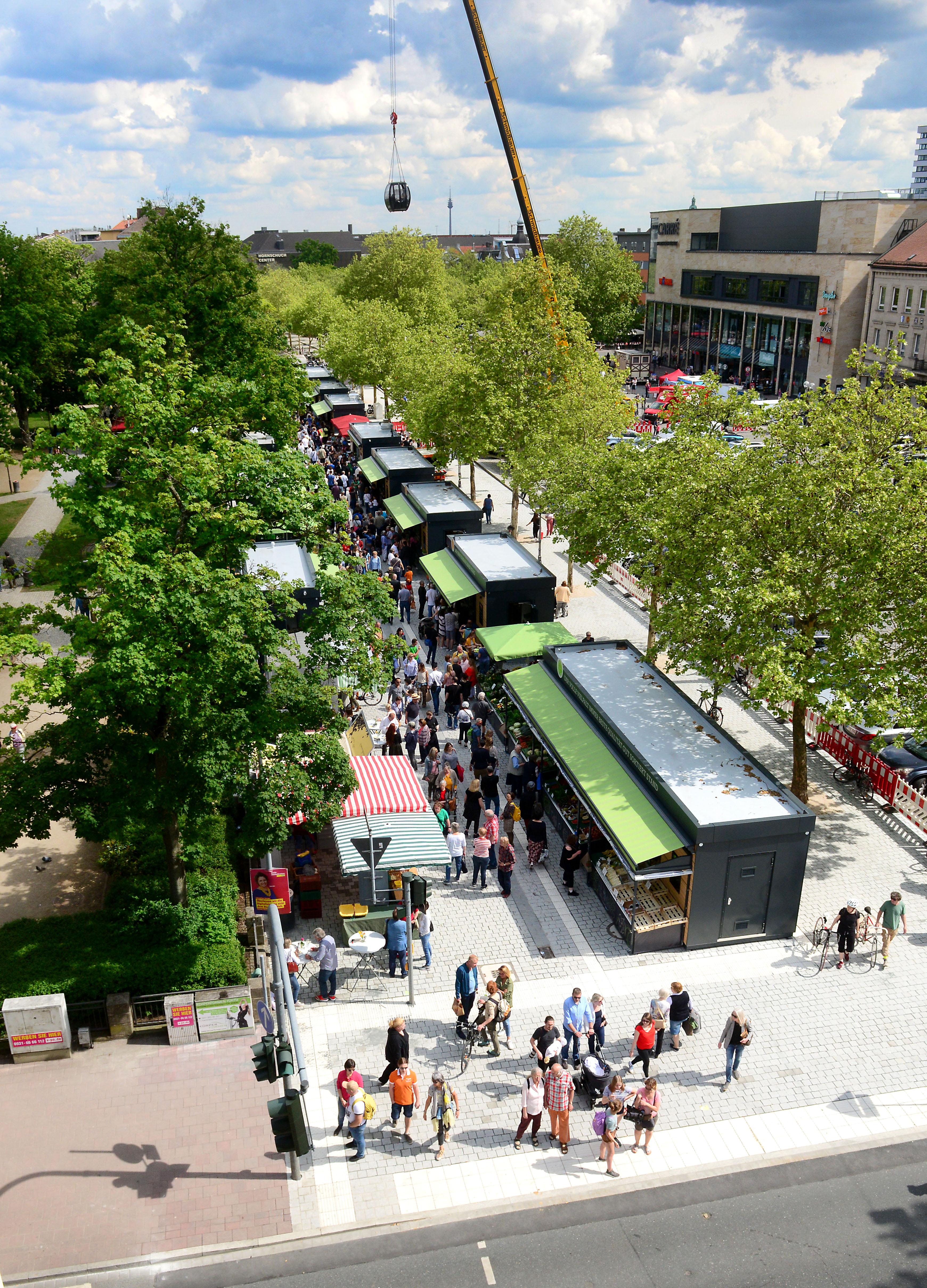 19/32 - Massenhaft eroberten die Fürther zum Auftakt ihren neuen Markt, bestens wurde das Angebot der Händler an 24 Buden und Ständen angenommen. © Hans-Joachim Winckler