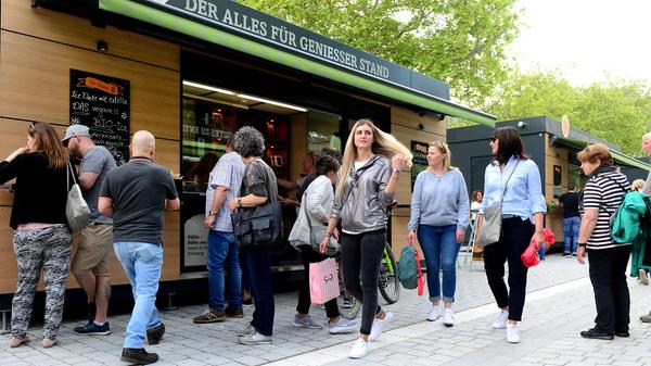 21/32 - Massenhaft eroberten die Fürther zum Auftakt ihren neuen Markt, bestens wurde das Angebot der Händler an 24 Buden und Ständen angenommen. © Hans-Joachim Winckler