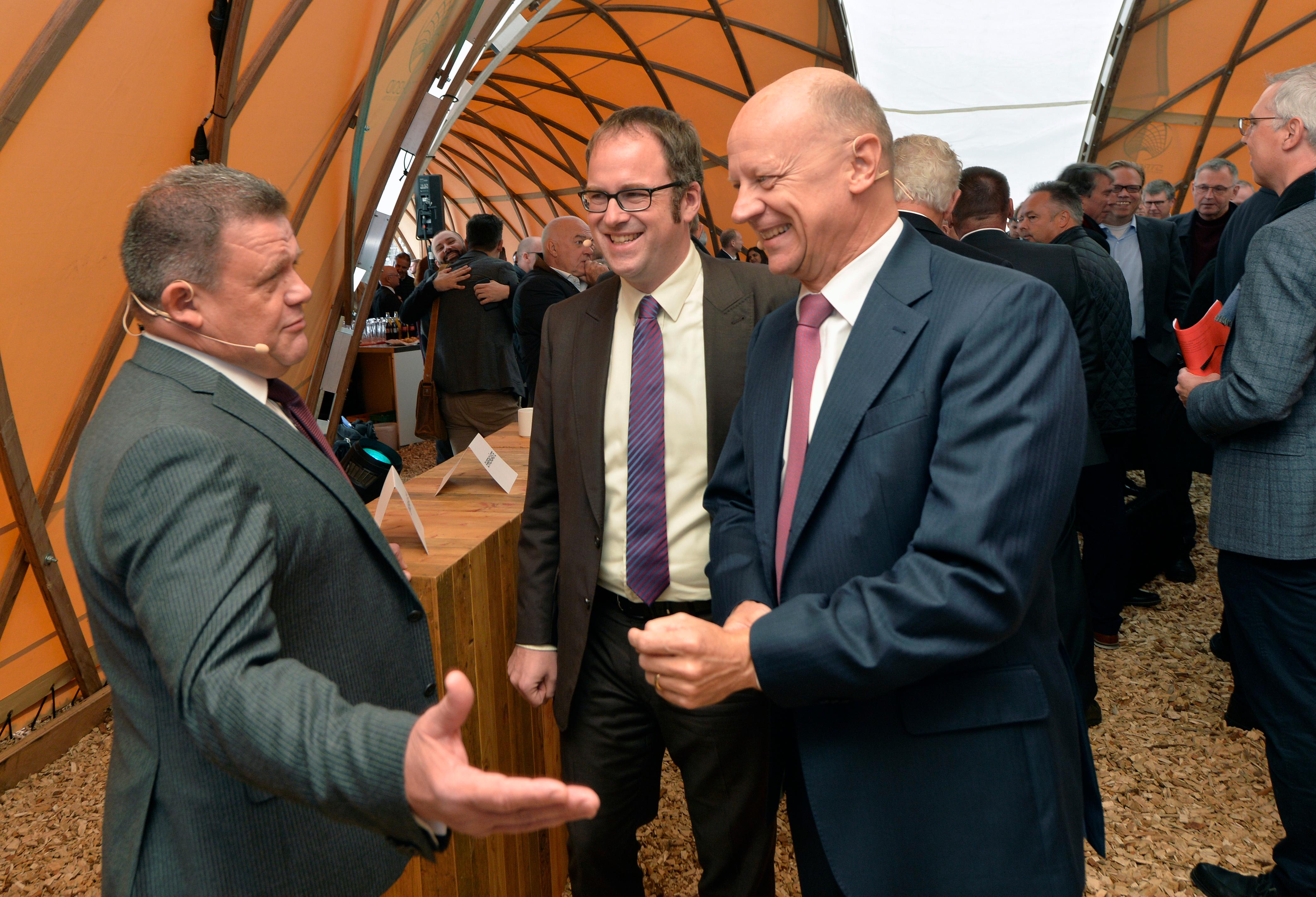 Im fast CO2-freien Zelt ist der Grundstein für das Modul 2 auf dem Siemens-Campus gelegt worden. Im Modul 2 ist auch das neue Empfangsgebäude enthalten, das zum neuen Wahrzeichen von Siemens in Erlangen werden soll.
