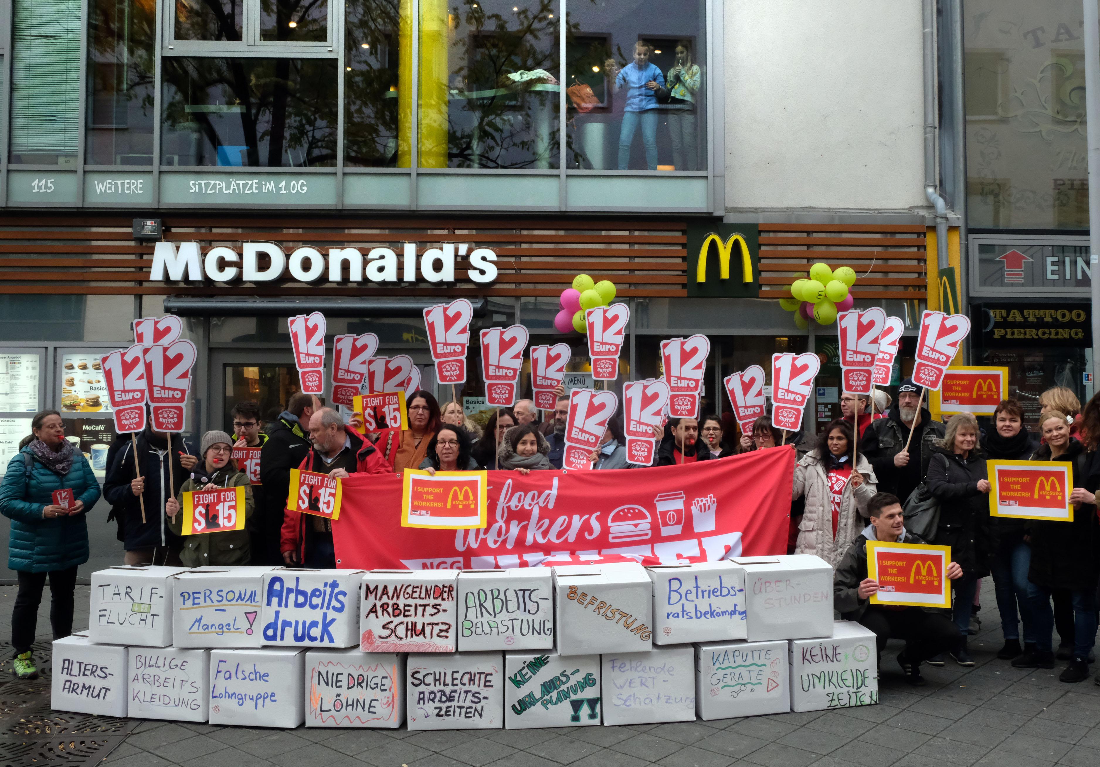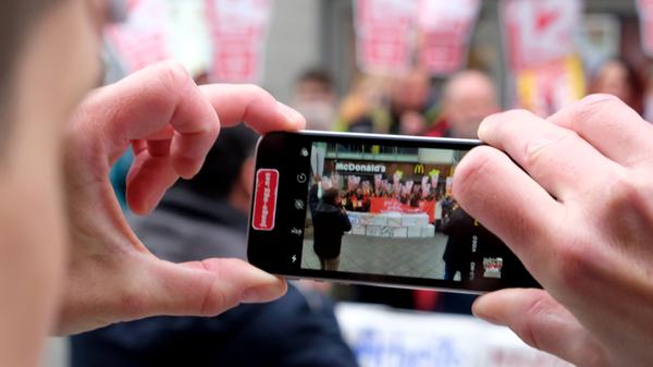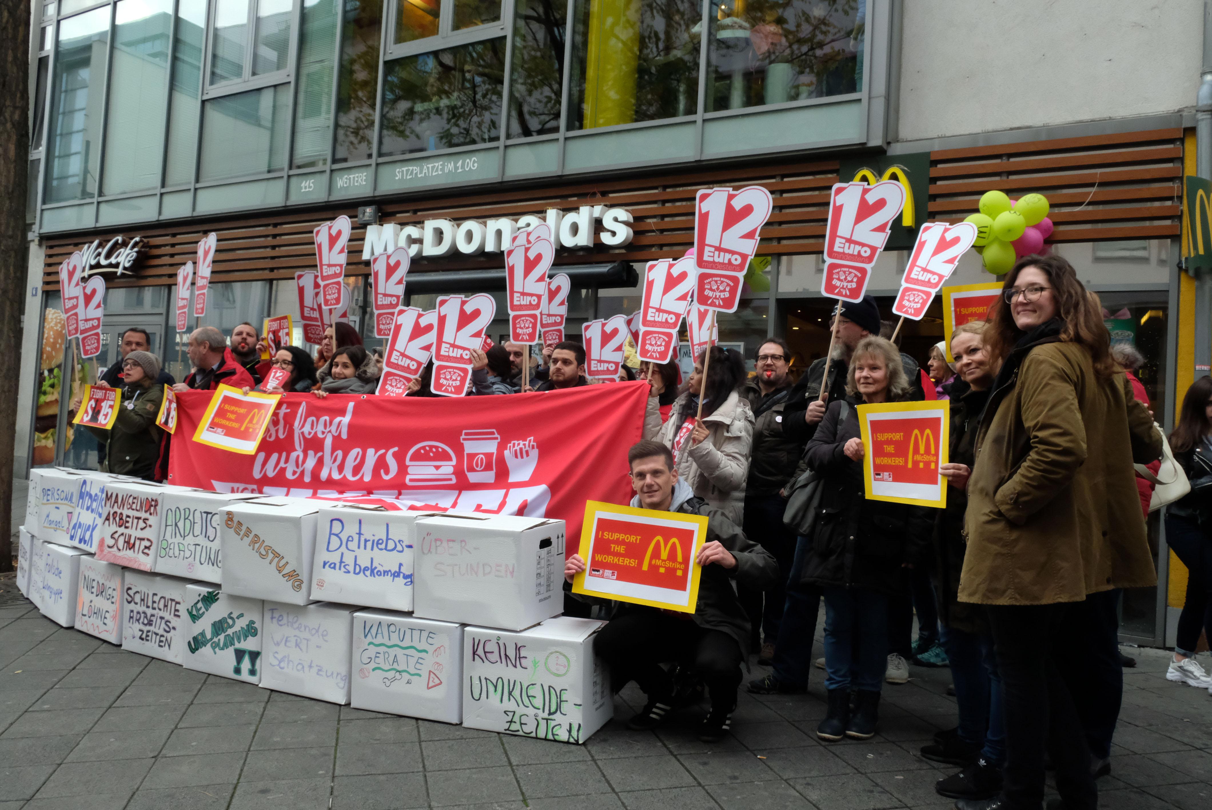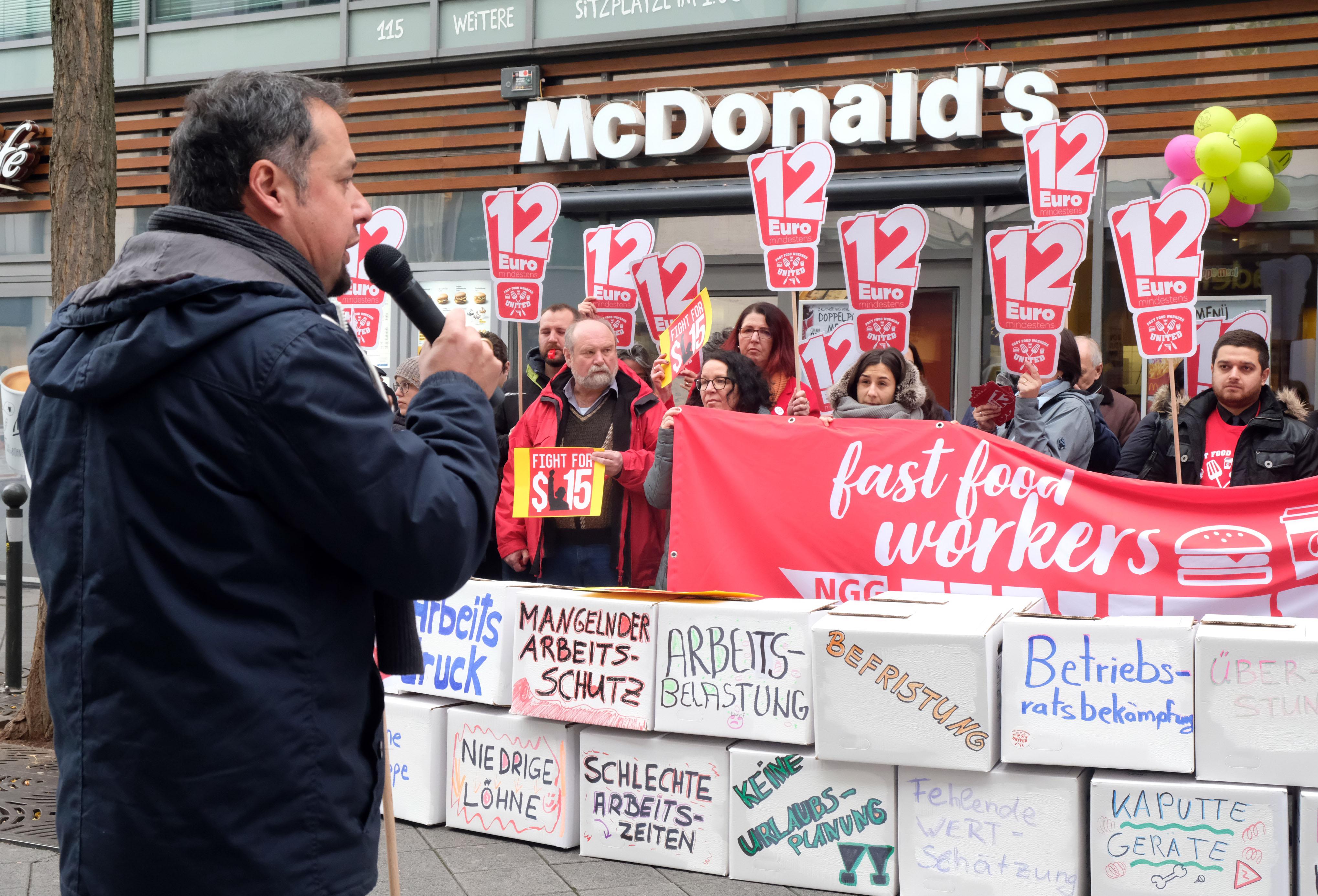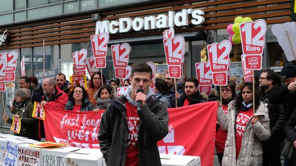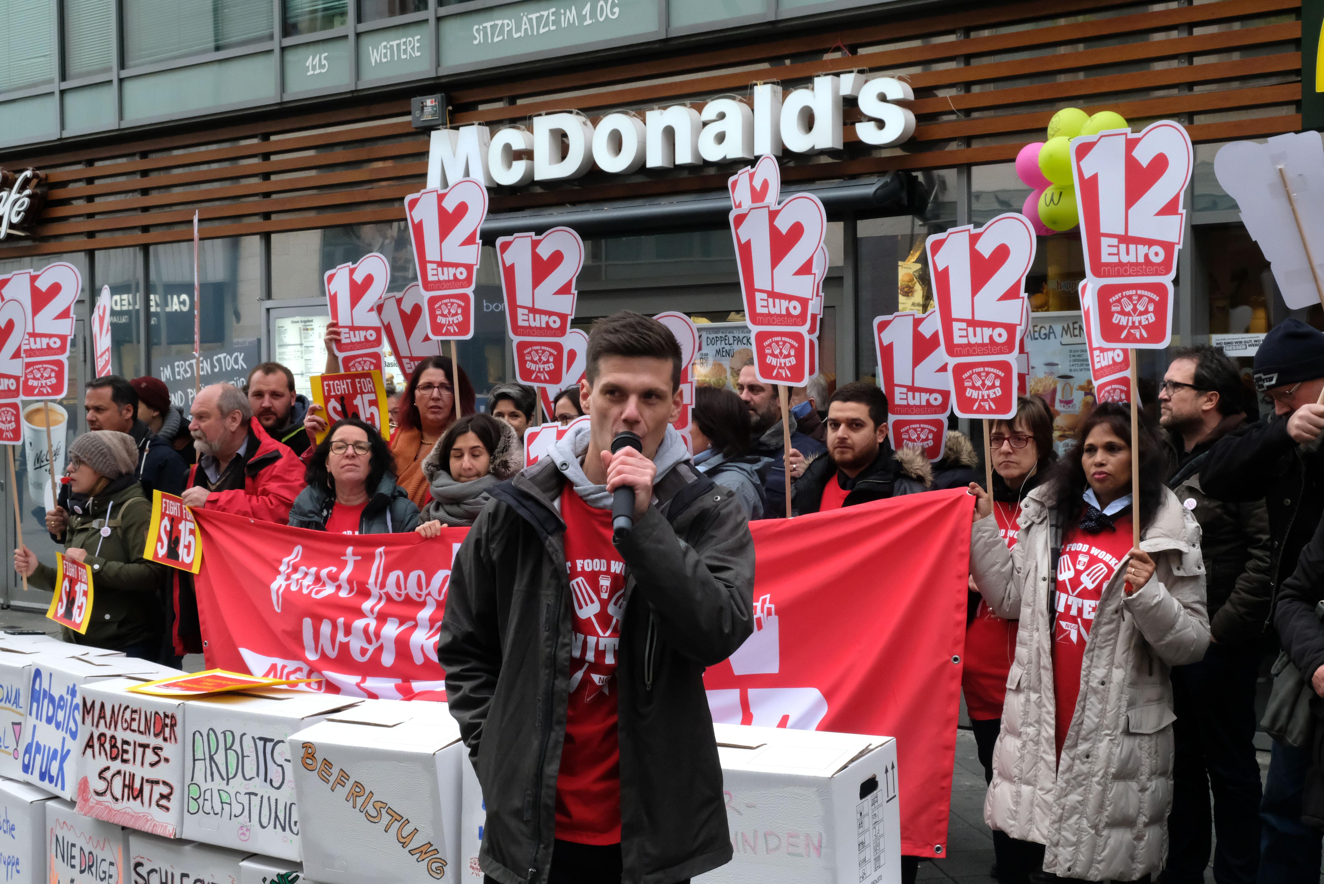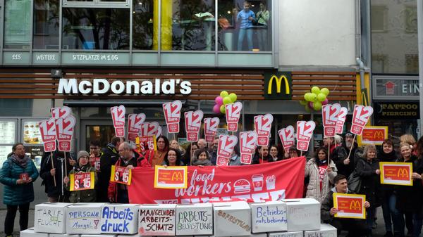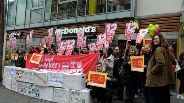 Am "International Fast Food Workers' Day" am 12. November gingen auch in Nürnberg viele Beschäftigte der Systemgastronomie auf die Straßen, um für gerechtere Löhne zu kämpfen - und auf ihre schlechten Arbeitsbedingungen aufmerksam zu machen.