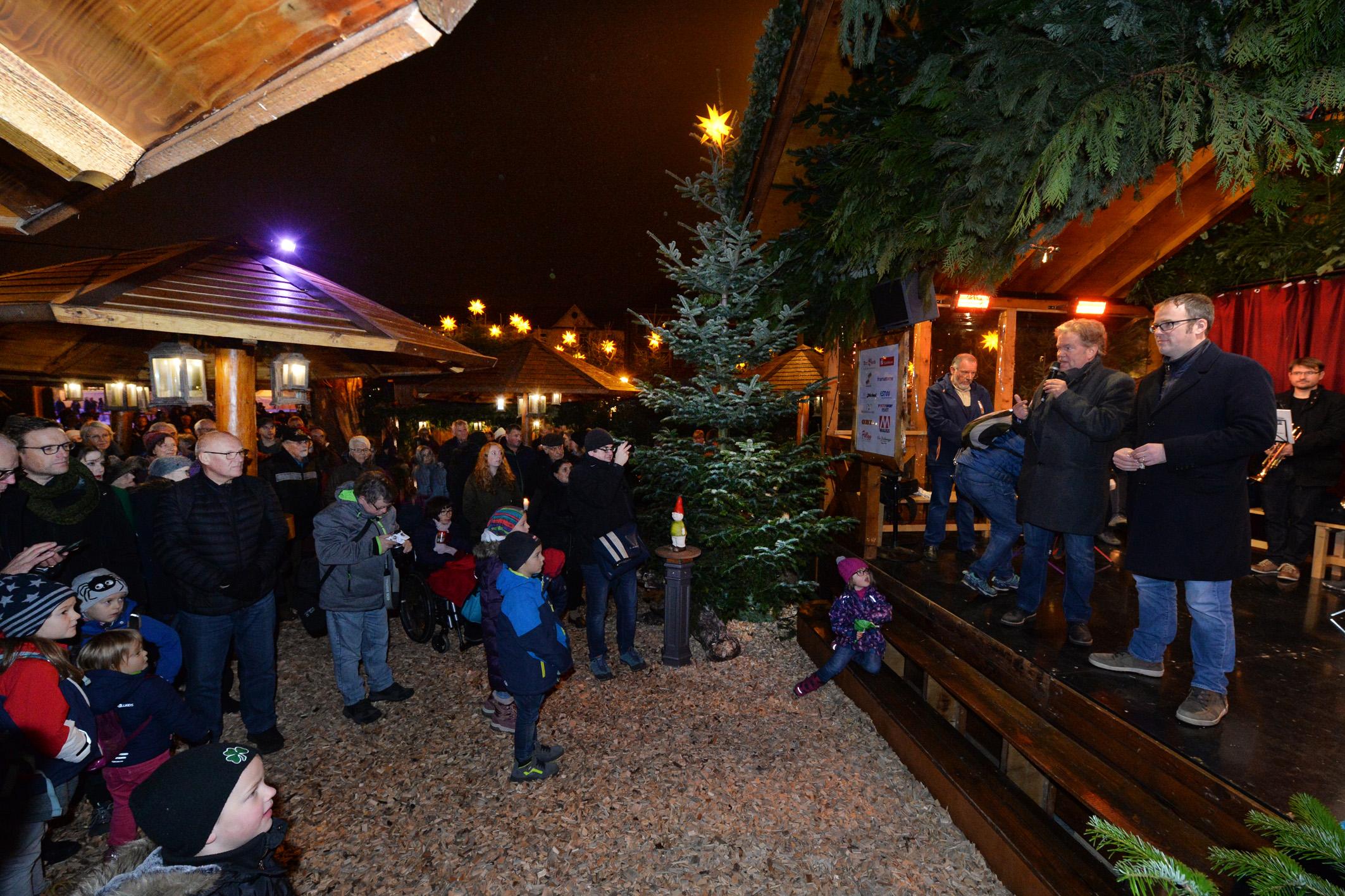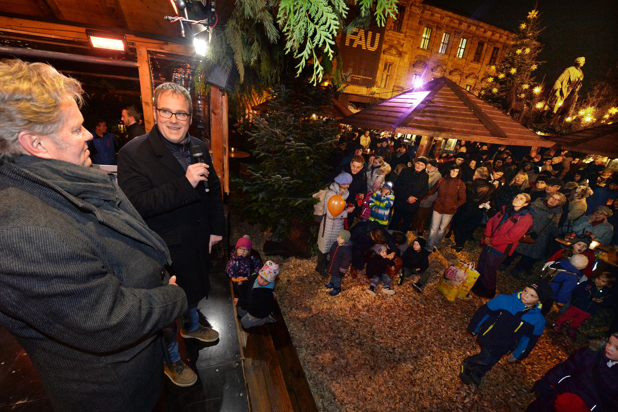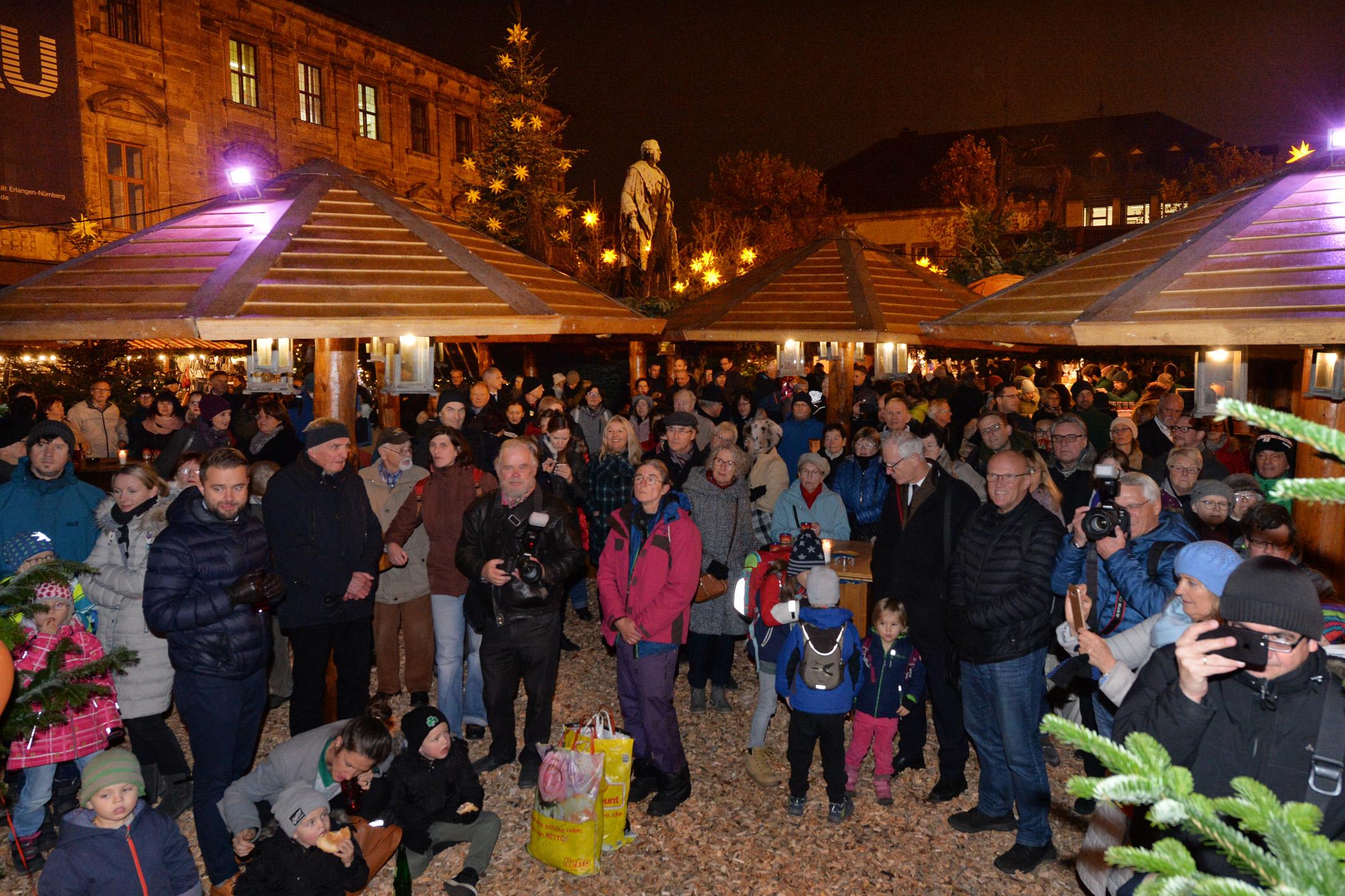 Die Hugenottenstadt strahlt wieder weihnachtlich: Am Montag hat Oberbürgermeister Florian Janik die drei Erlanger Weihnachtsmärkte feierlich eröffnet. Den Anfang machte er auf der Waldweihnacht auf dem Schlossplatz. Dort stimmte der Posaunenchor Frauenaurach die Gäste auf Weihnachten ein, bevor Janik gemeinsam mit dem "Macher" der Waldweihnacht, Ernst Stäblein den schmucken Christbaum "anzündete". Dann ging es weiter zum Historischen Weihnachtsmarkt an der Neustädter Kirche und zum Weihnachtsmarkt auf dem Altstädter Kirchenplatz.