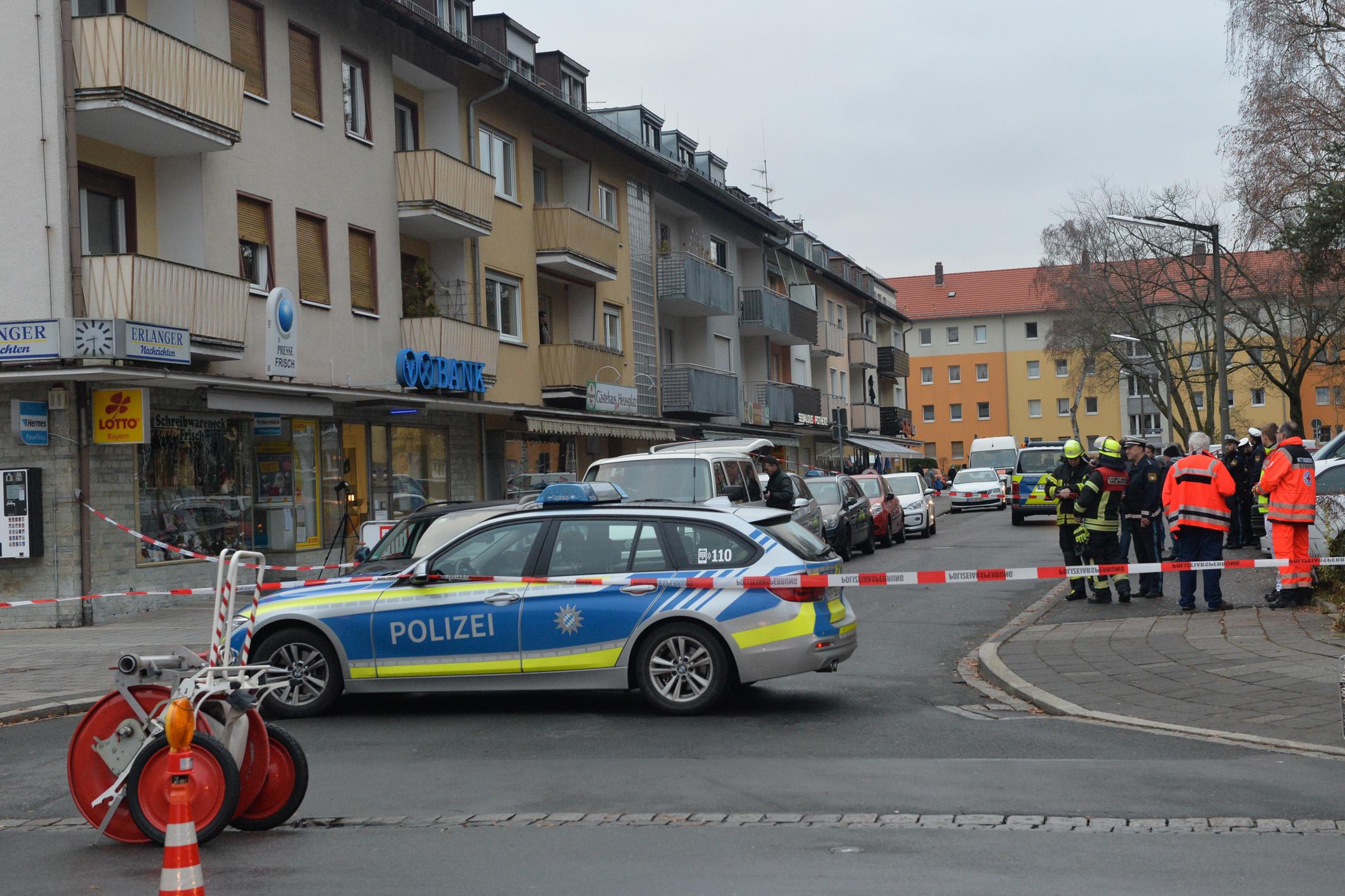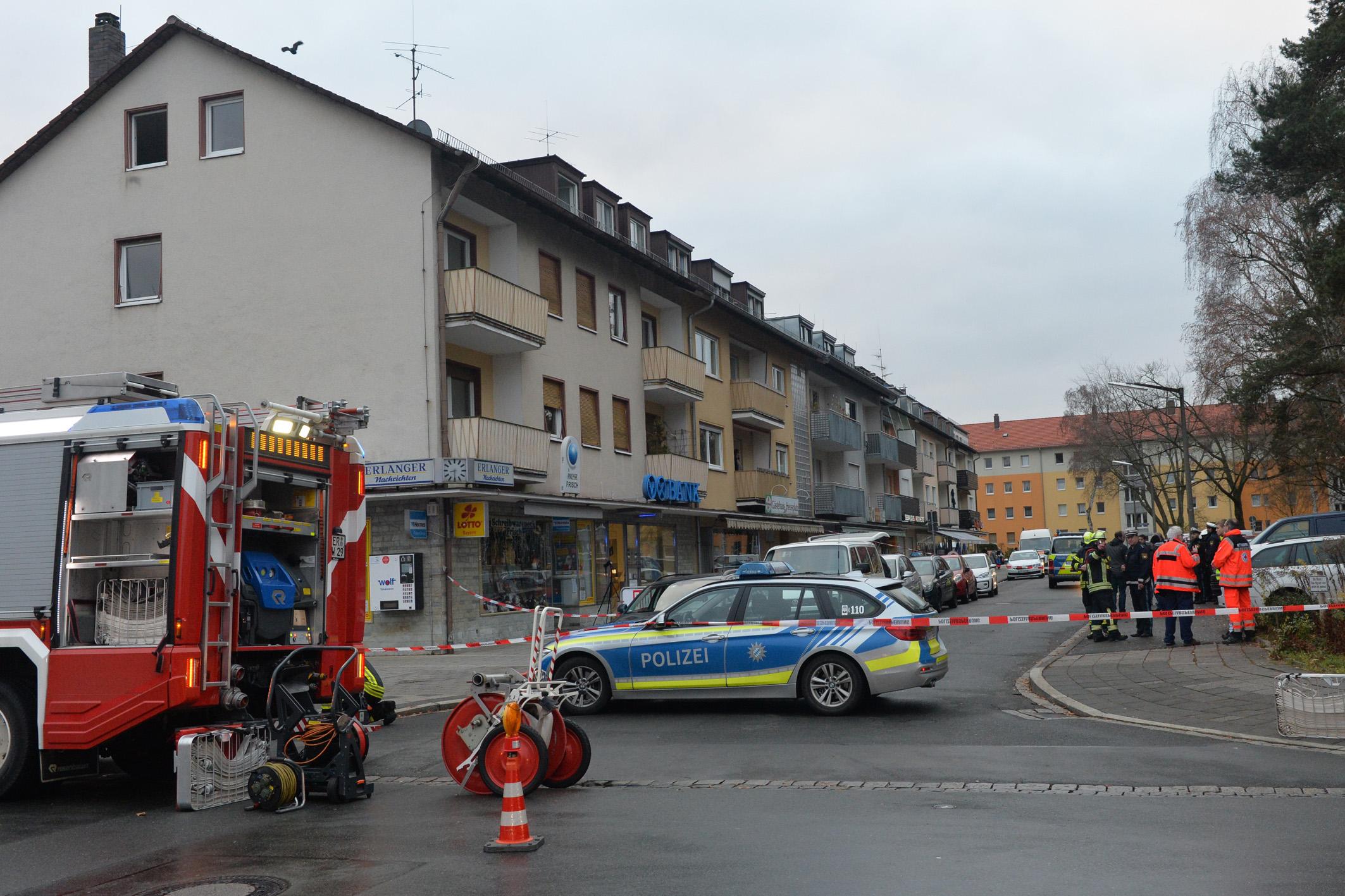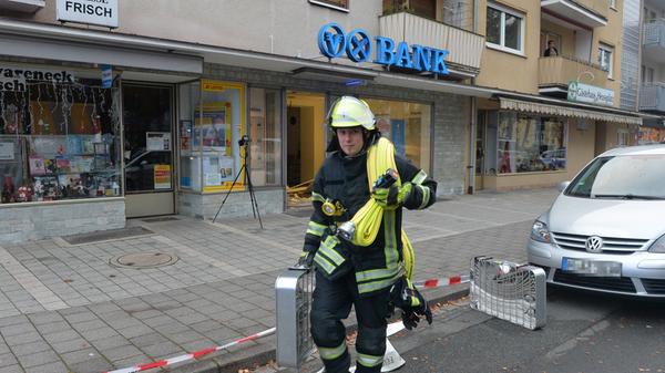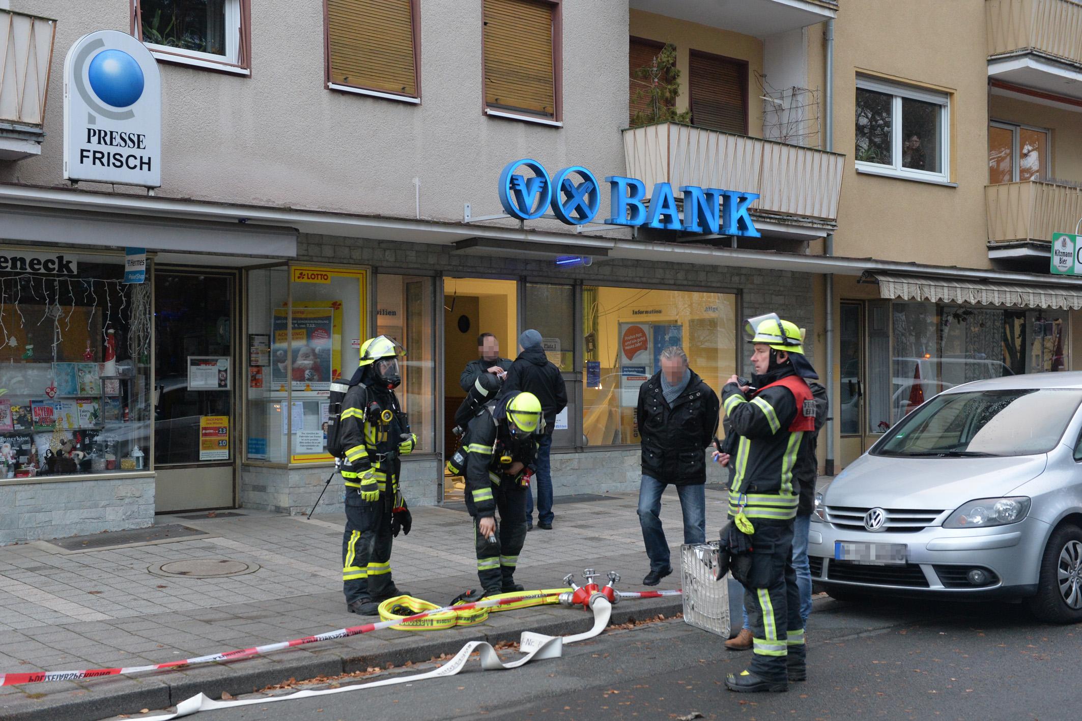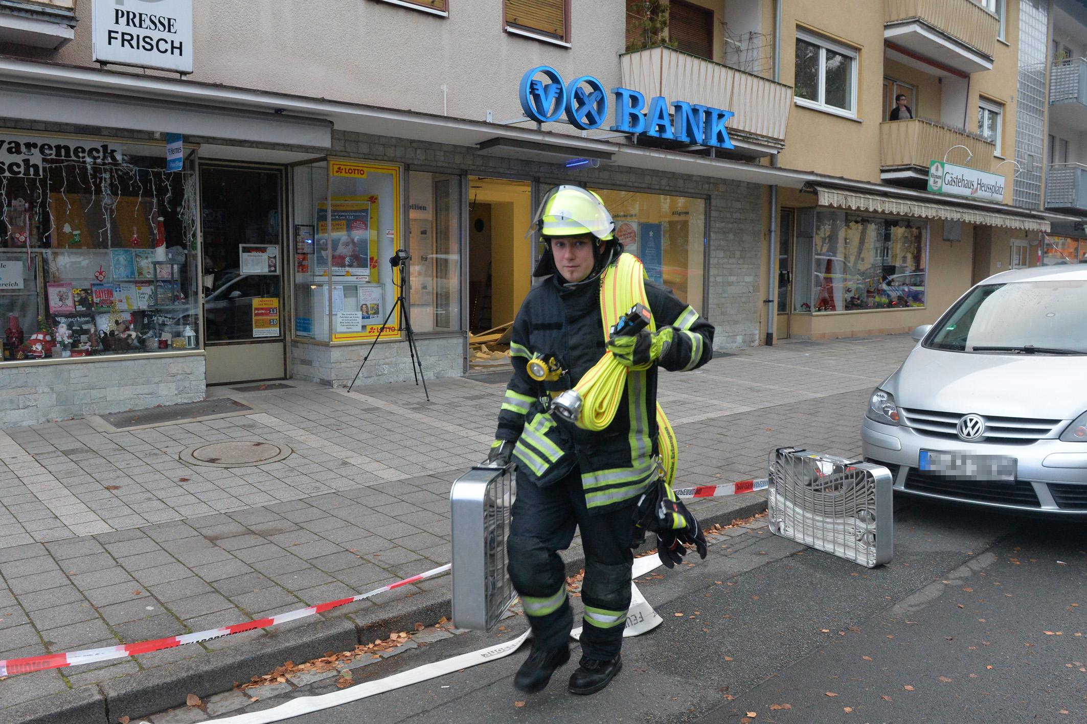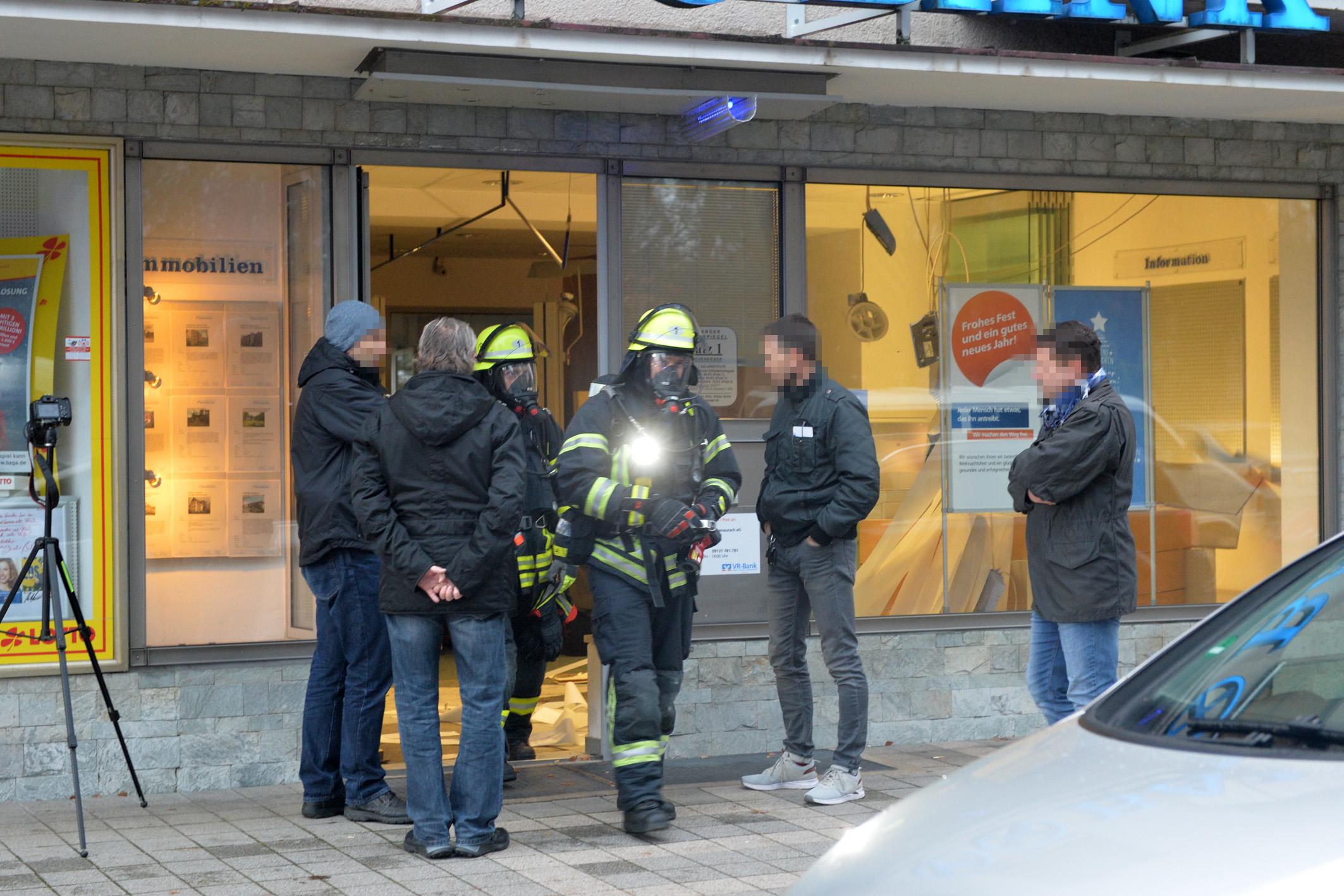 Unbekannte haben am frühen Dienstagmorgen den Geldautomaten einer Bank in Erlangen gesprengt. Sie konnten unerkannt - jedoch ohne Beute flüchten. Durch die Explosion wurde der Serviceraum der Bank komplett verwüstet. Weil nicht sicher war, ob Gas aus dem Automaten austrat, evakuierte die Polizei Anwohner benachbarter Wohnungen.